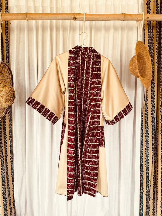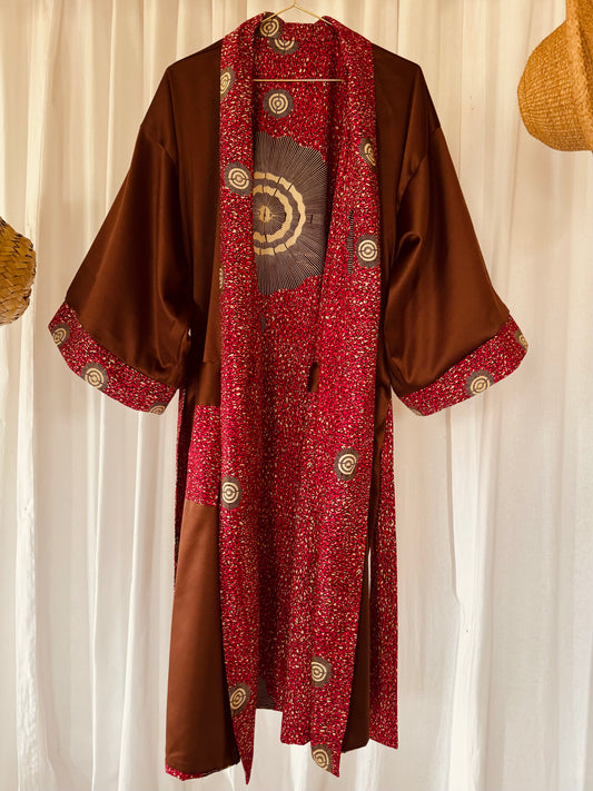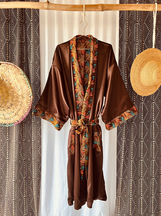 Entdecke unsere Wende-Kimonos: Eine Fusion aus luxuriösem Satin, plüschigem Samt und bezaubernden afrikanischen Stoffen.