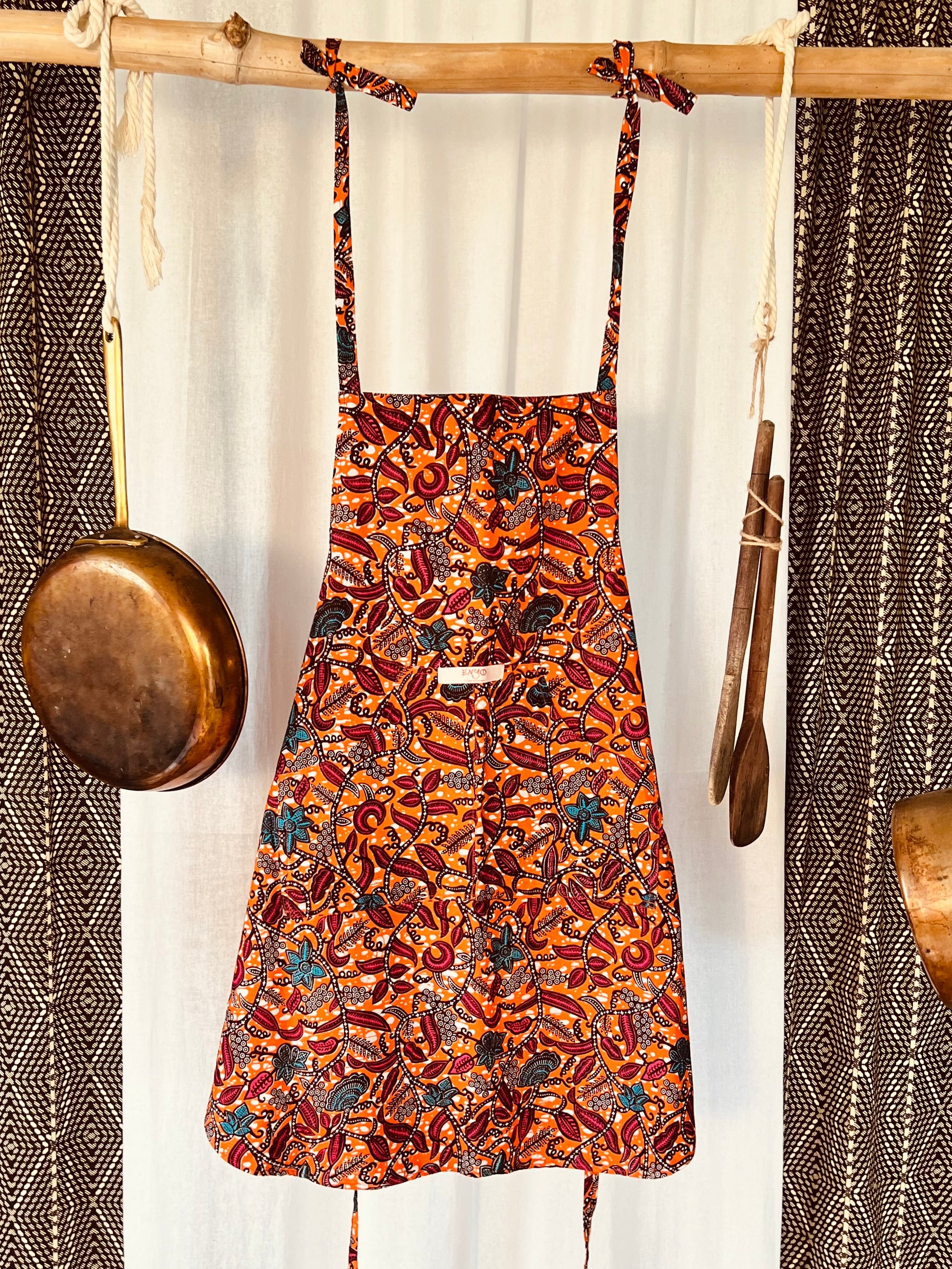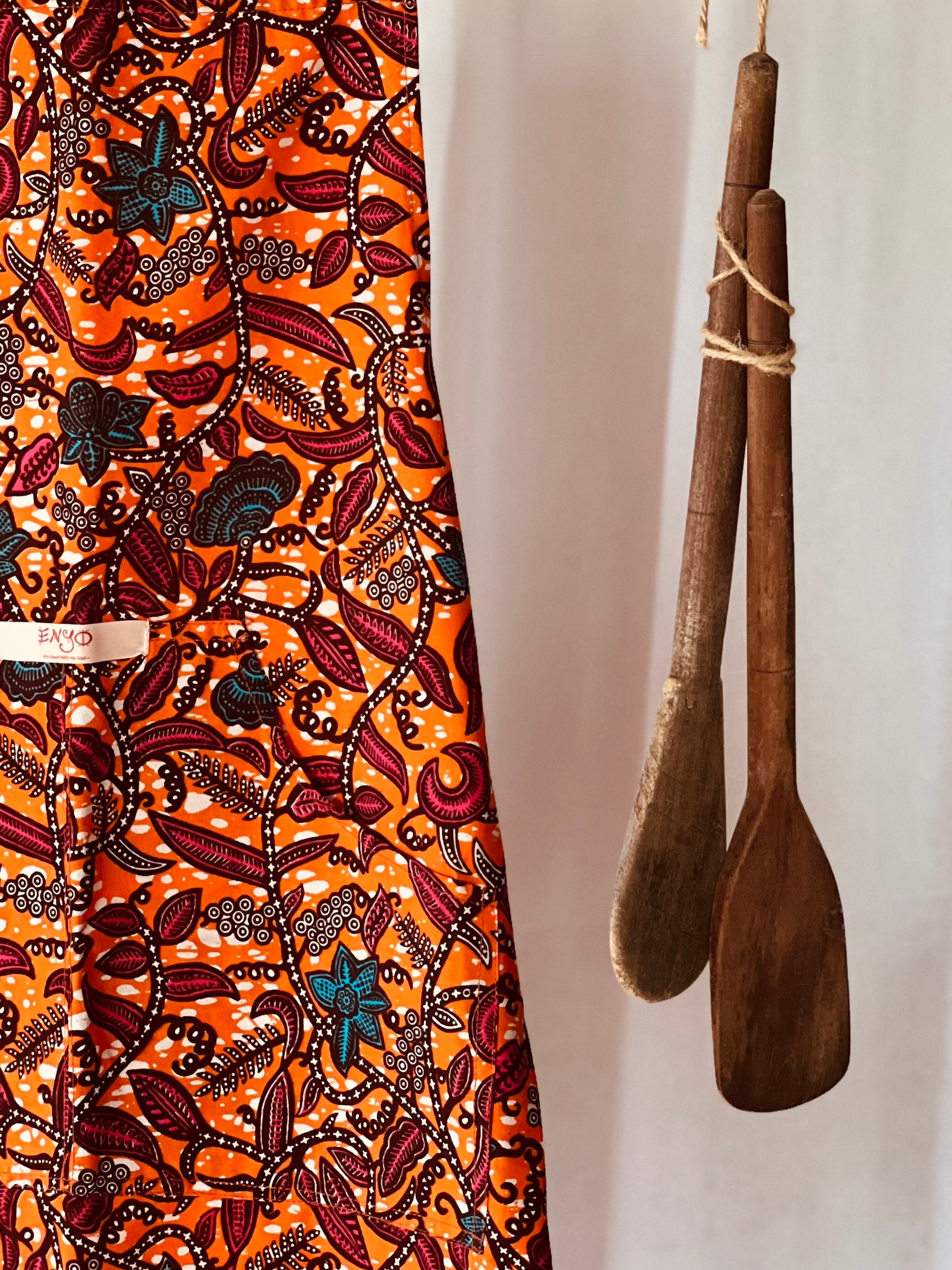 Mit Liebe handgefertigt und mit authentischem African Print ist jede Schürze ein Unikat. Das bedeutet, dass jedes einzelne Stück leicht von dem auf den Bildern abgebildeten Modell abweichen kann.
