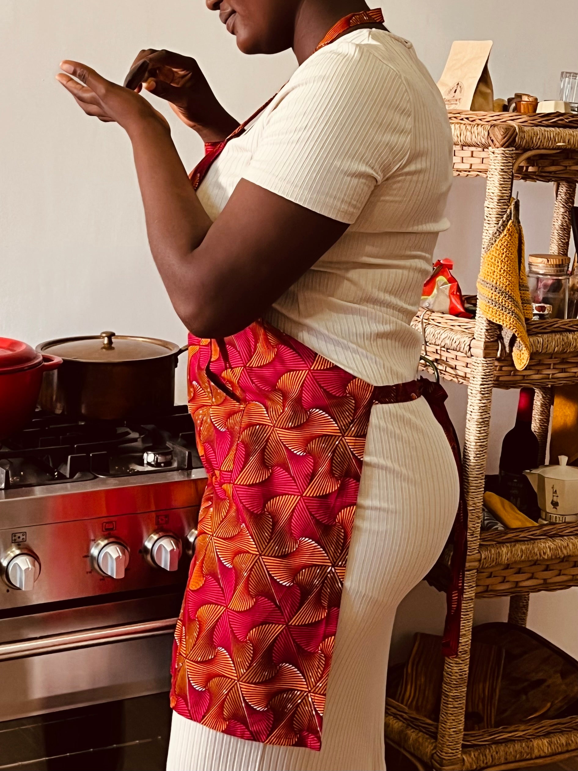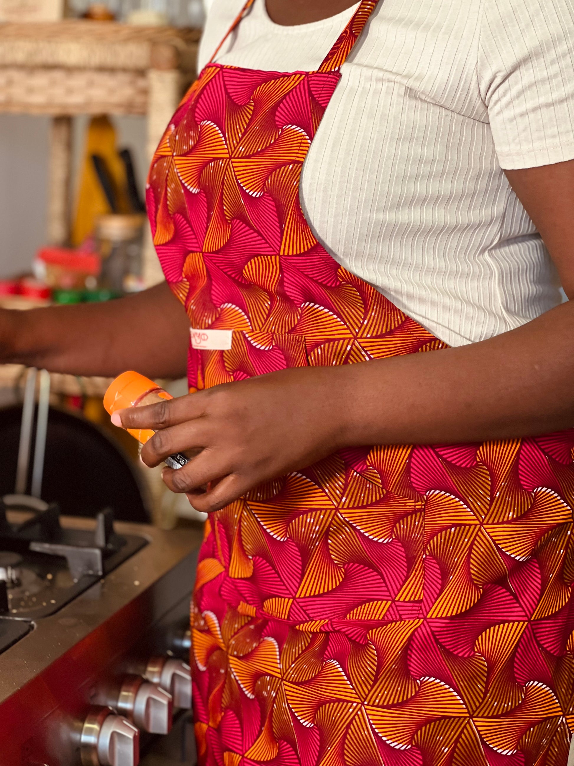 Mit Liebe handgefertigt und mit authentischem African Print ist jede Schürze ein Unikat. Das bedeutet, dass jedes einzelne Stück leicht von dem auf den Bildern abgebildeten Modell abweichen kann.