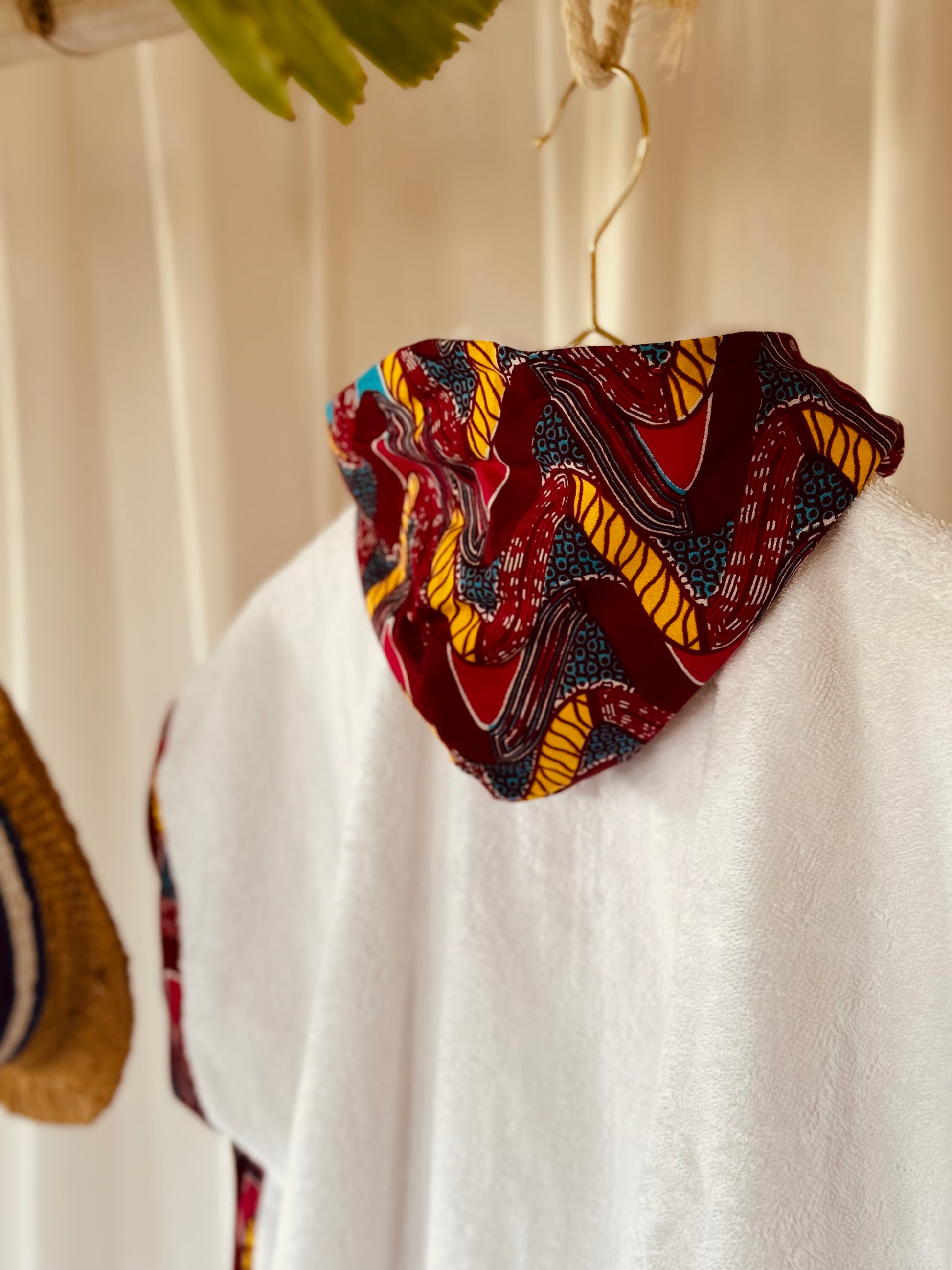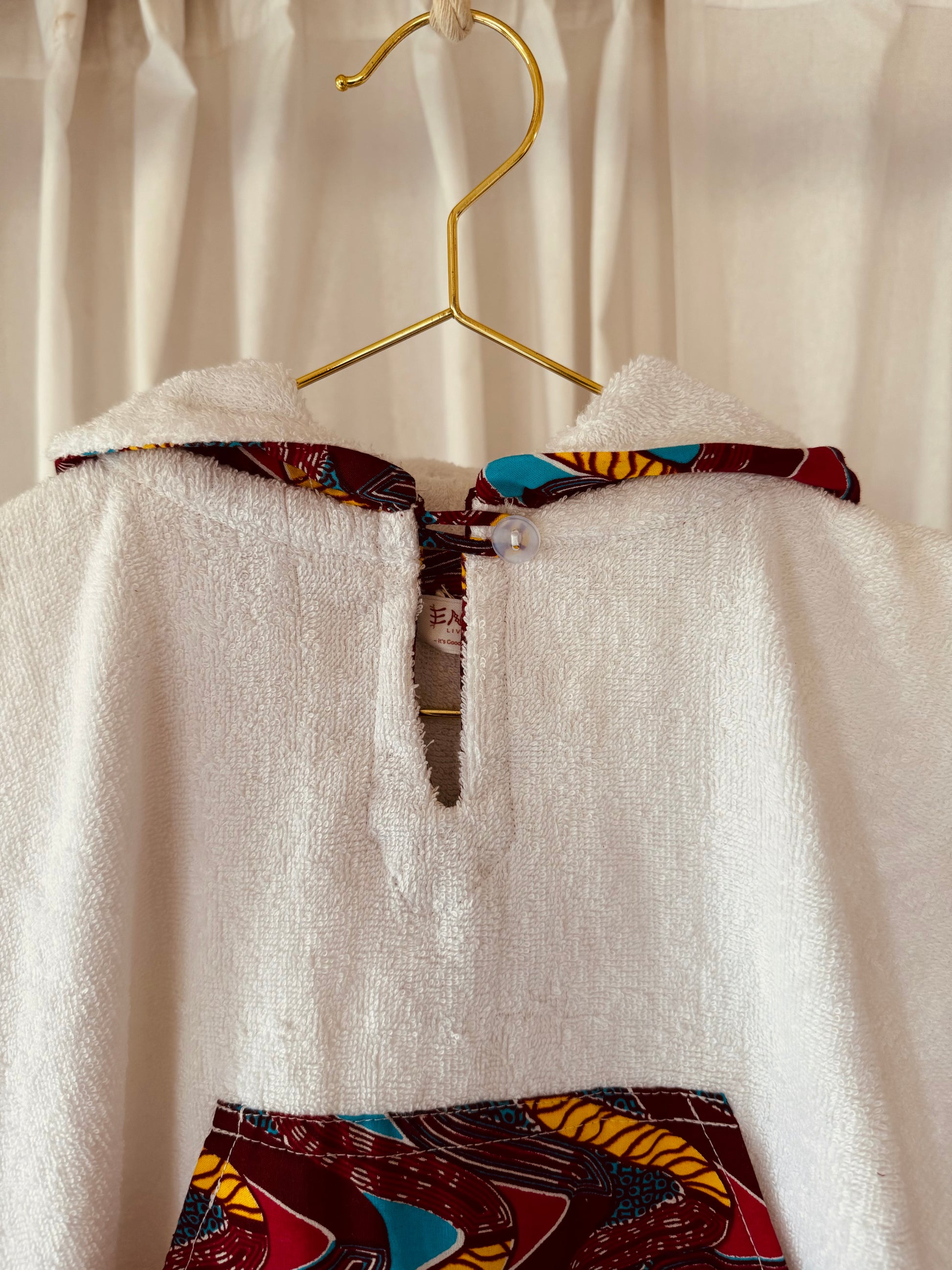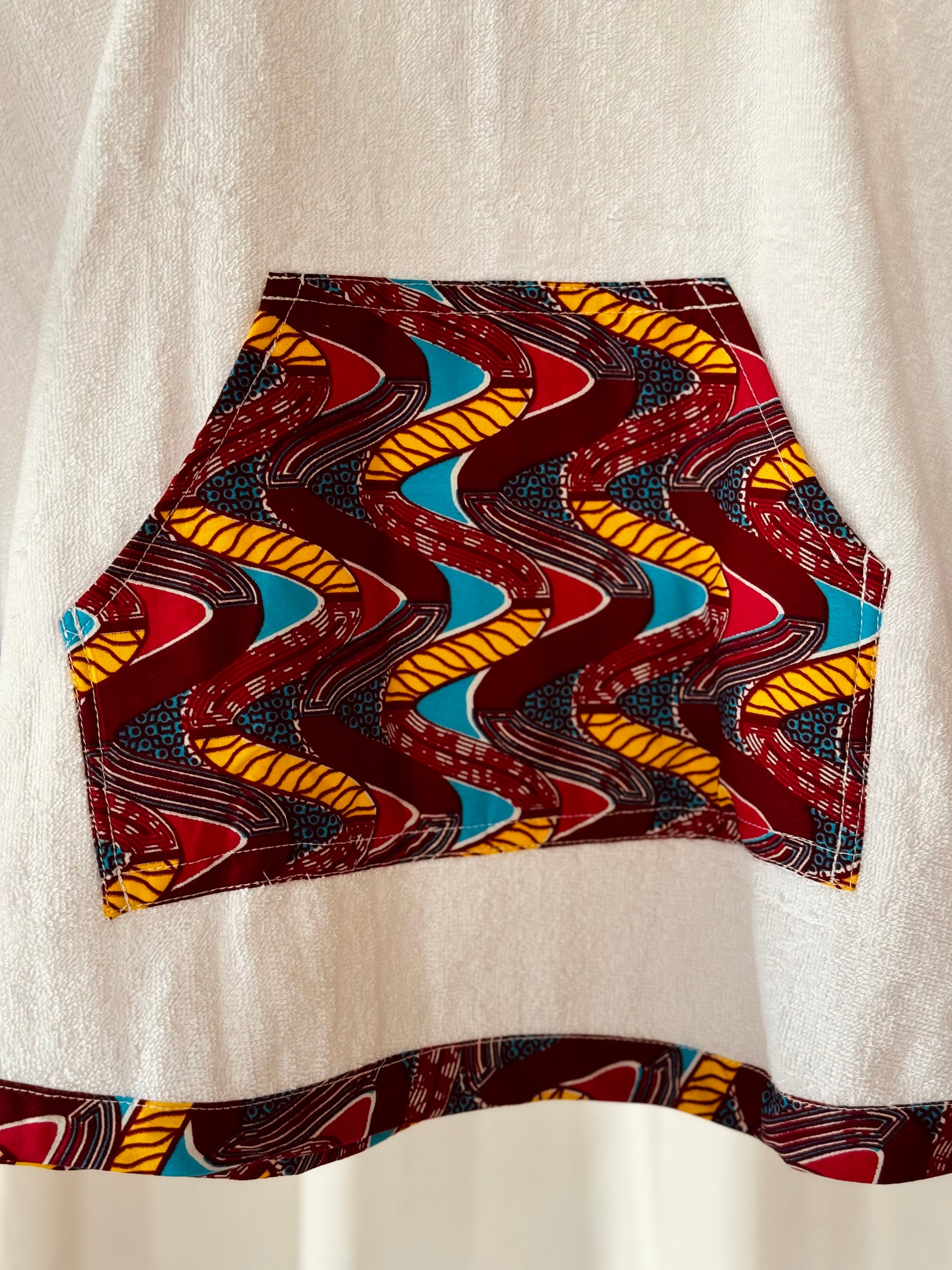 Pepp die Garderobe deines Kindes mit unserem Kinder-Poncho „Piano Bar“ auf! Mit dem lebendigen African Print-Design ist dieser gemütliche und warme Poncho perfekt für Wasseraktivitäten. Mit praktischen Taschen und einer Kapuze zum Schutz vor Wind ist er das ultimative Accessoire für Strand, Pool oder auch das Badezimmer.