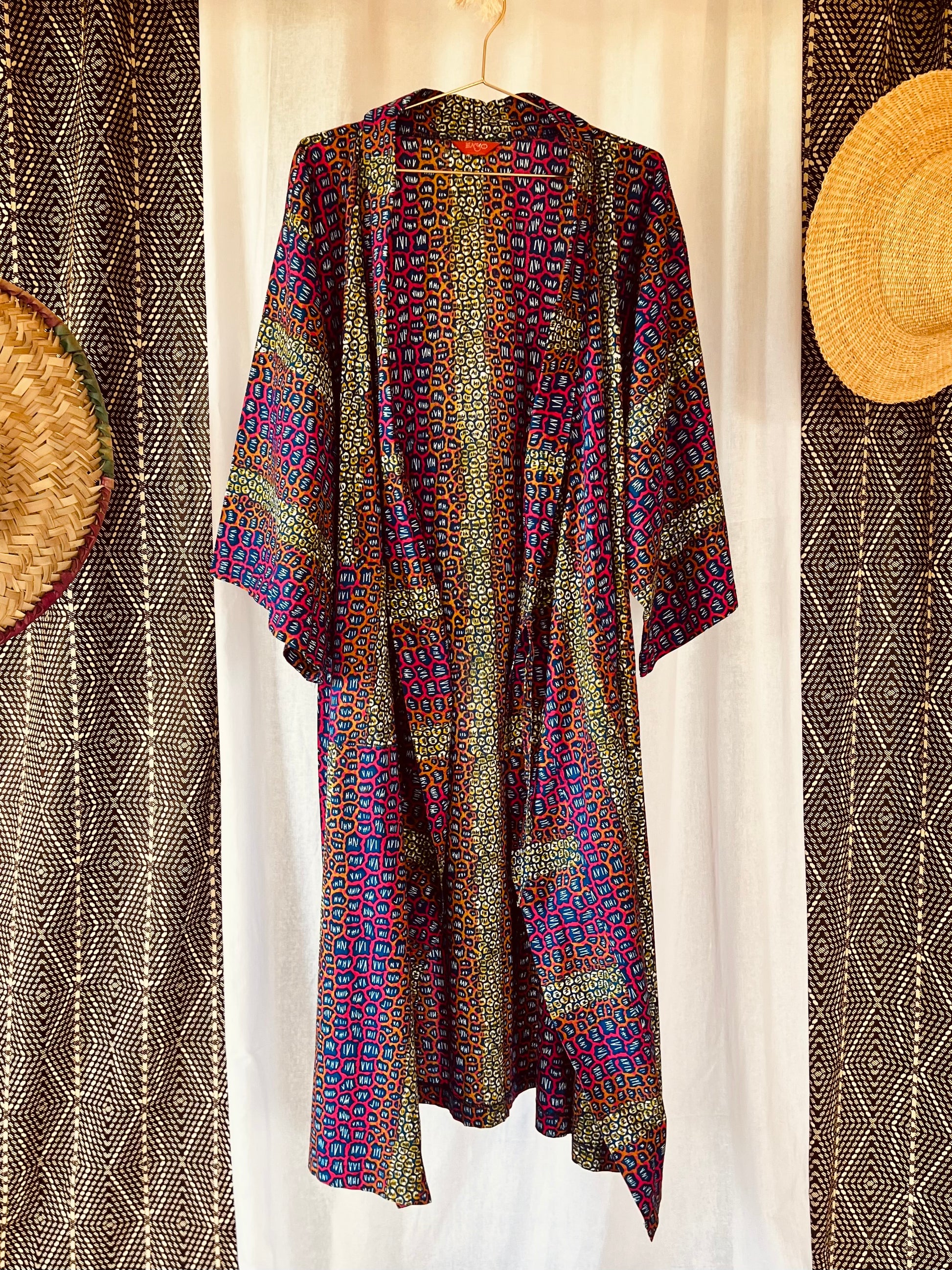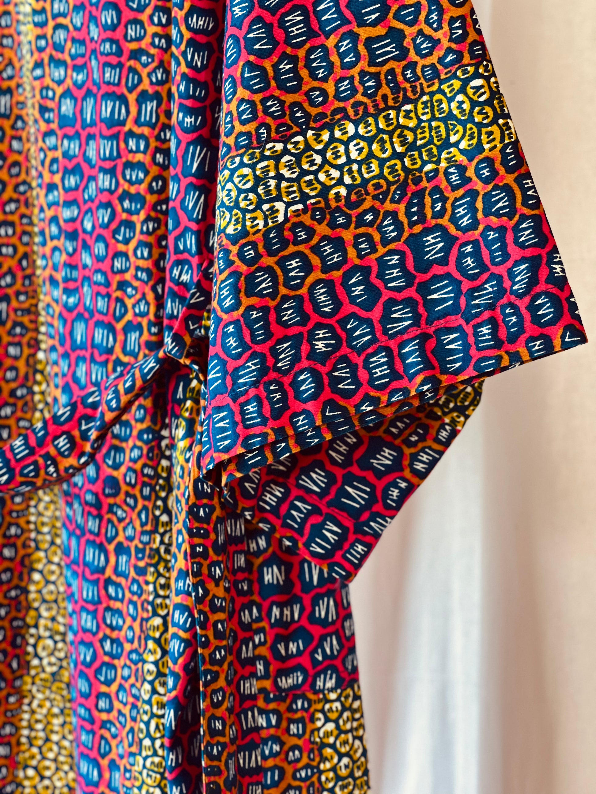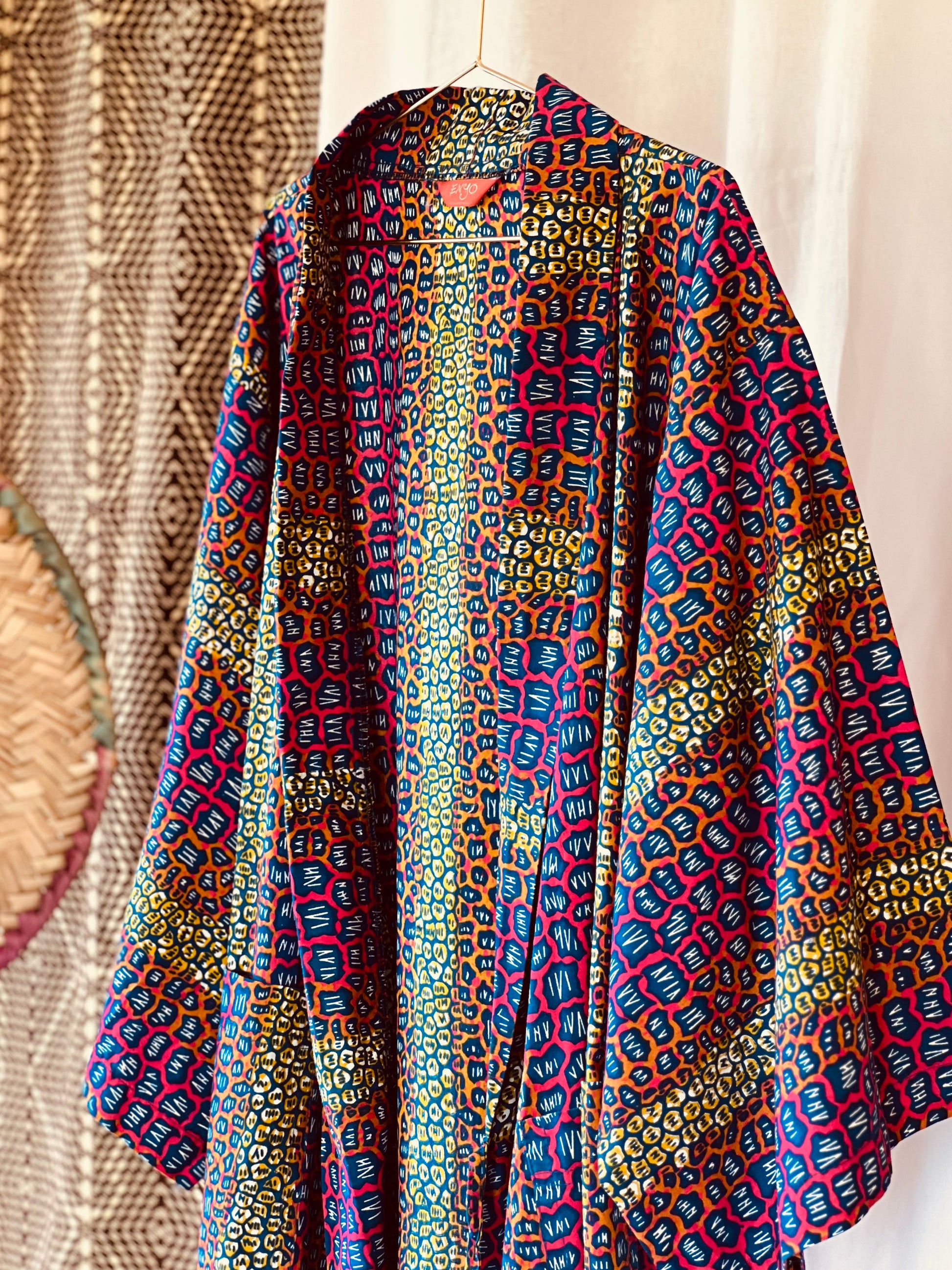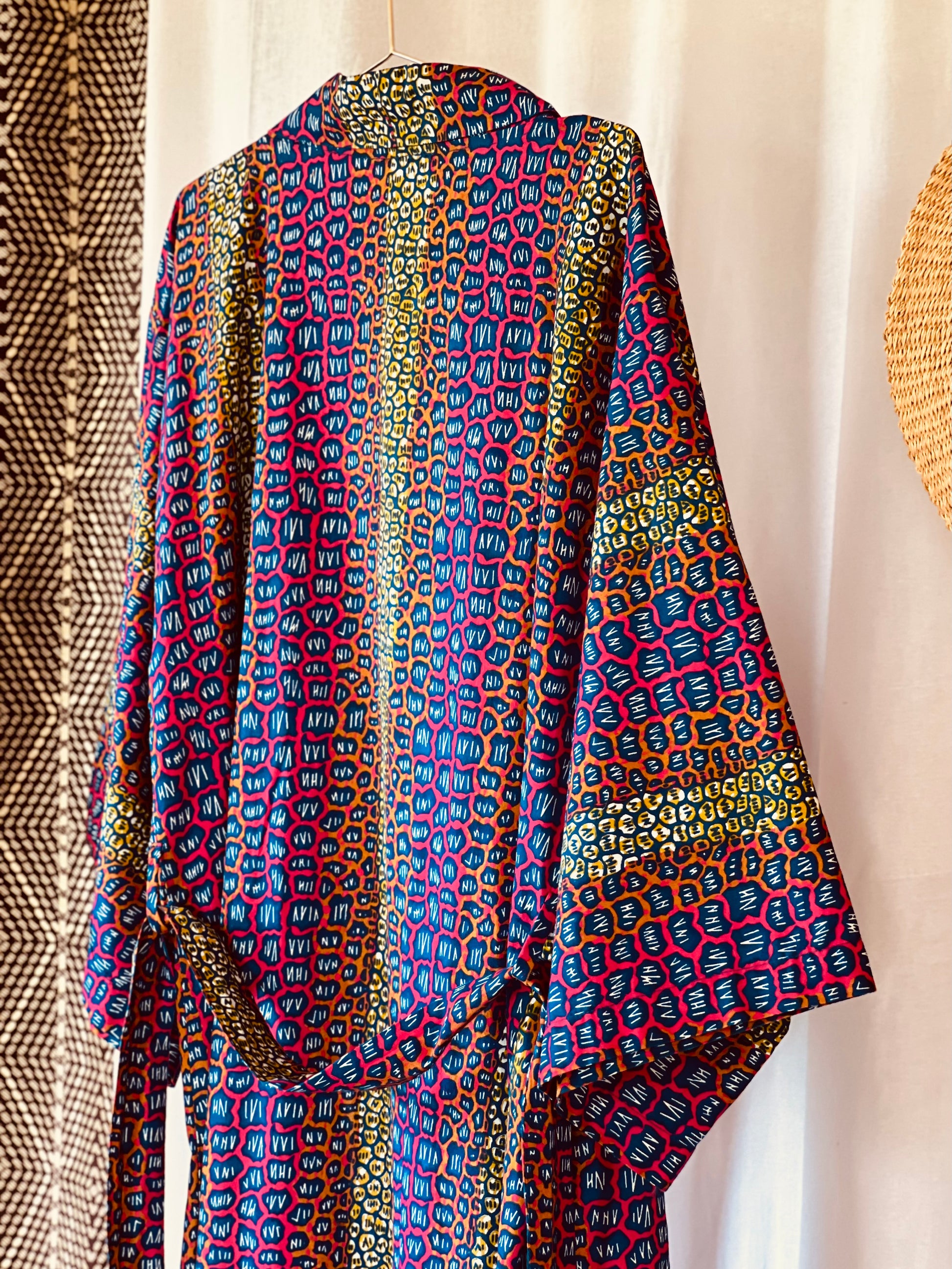 Erlebe puren Komfort in unserem Afrikimo „Gravels of Joy“. Manchmal liegt die Schönheit in den einfachen Dingen. Handgefertigt aus lebendigem afrikanischen Stoff aus 100 % Baumwolle, kombiniert dieses Stück verspieltes Rosa und Blau mit beruhigenden Grün- und Brauntönen. Lehne dich zurück, entspanne dich und genieße einfach den Moment.