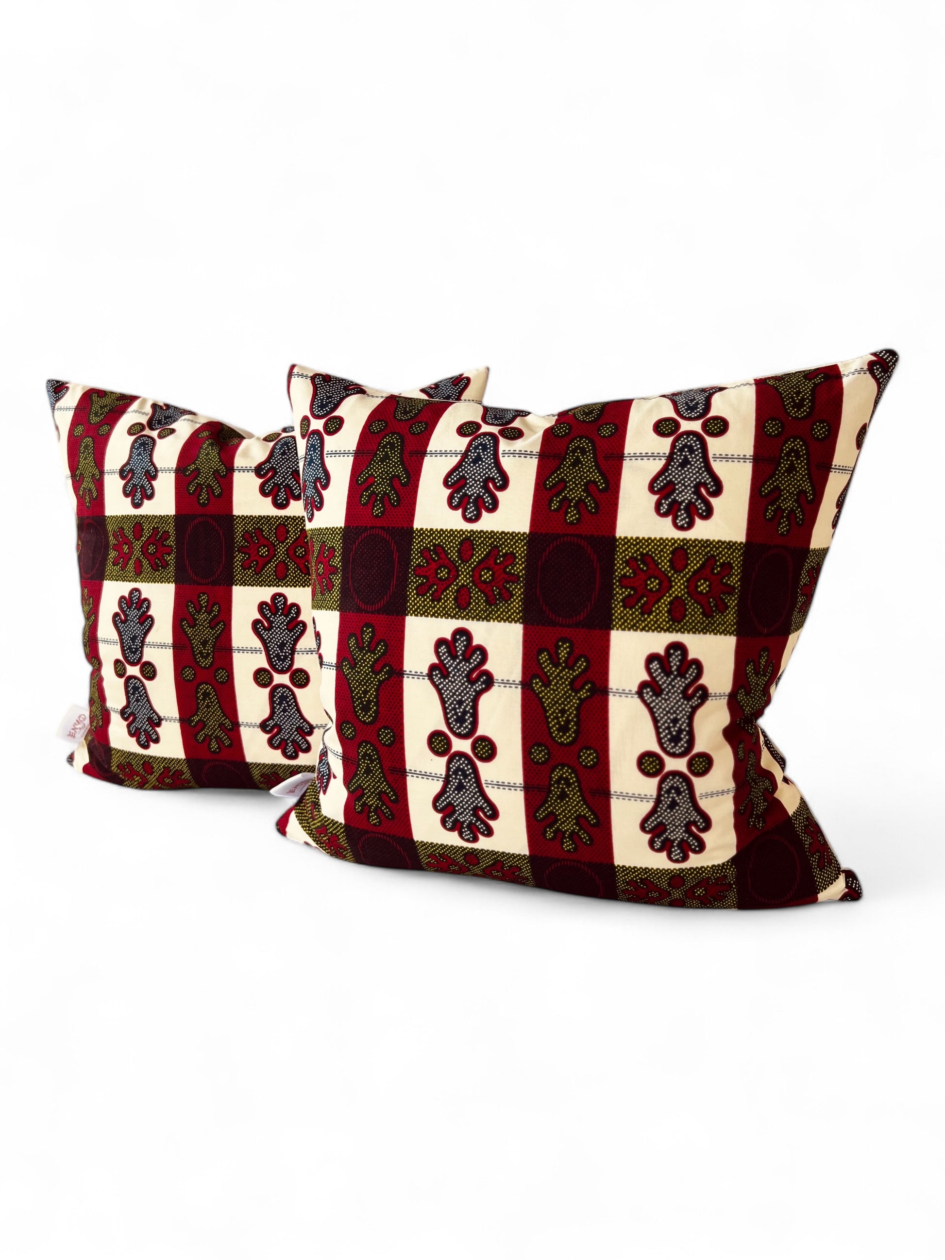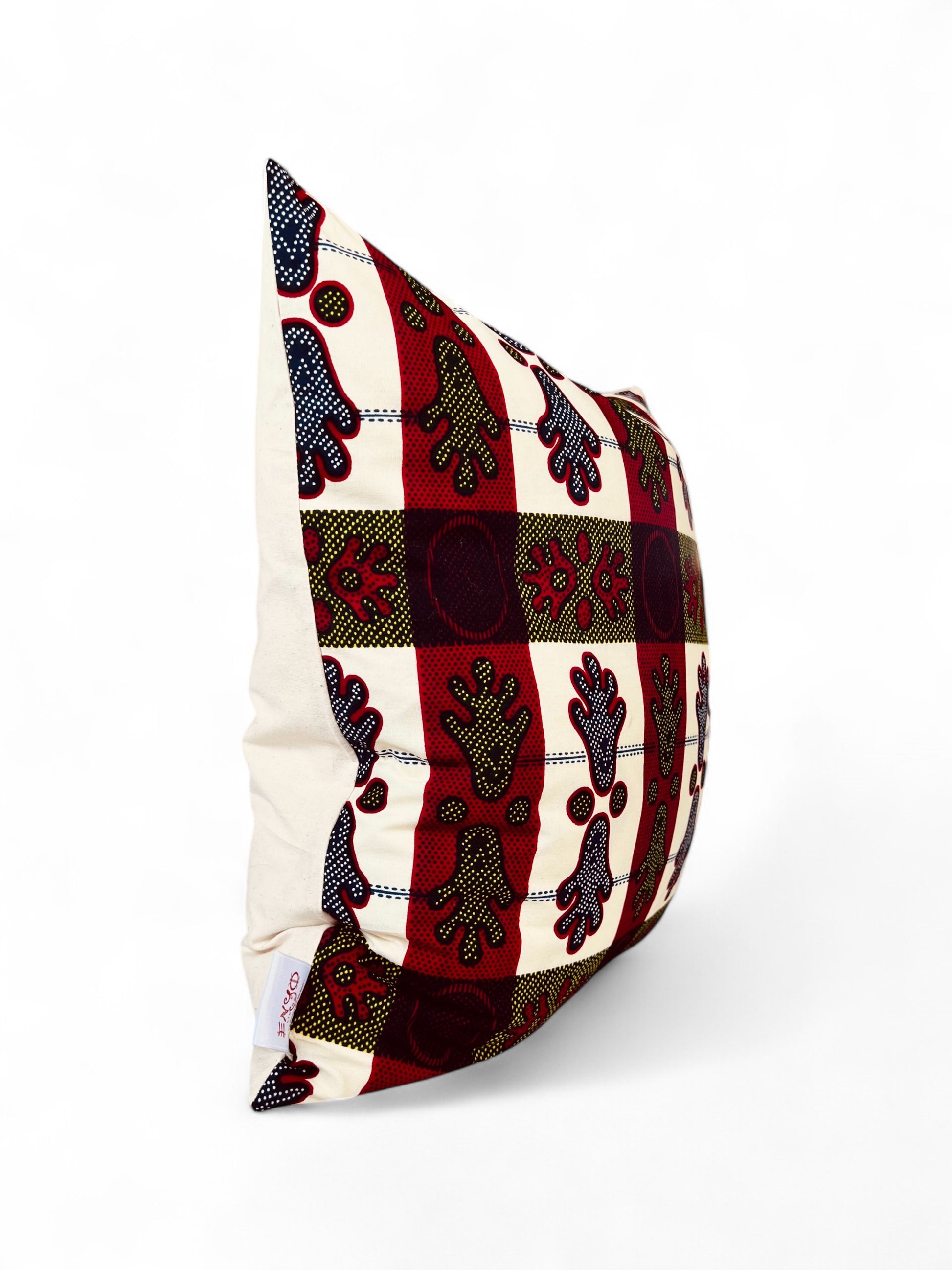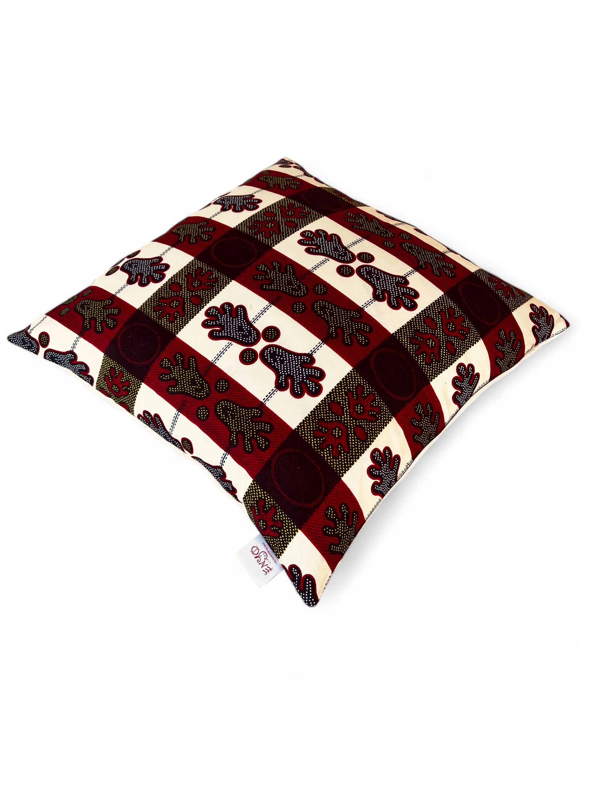Genieße ultimativen Komfort mit unserem Kissenbezug „In the Palm of Your Hand“. Gefertigt aus weicher Baumwolle und verziert mit einem einzigartigen traditionellen African Print in Weinrot, Dunkelblau und Creme, verleiht dieser Kissenbezug jedem Raum eine erdende und zugleich elegante Note. Das klassische Karomuster, kombiniert mit abstrakten Handsymbolen, macht diesen Kissenbezug zu einem charmanten und kunstvollen Highlight deiner Inneneinrichtung.