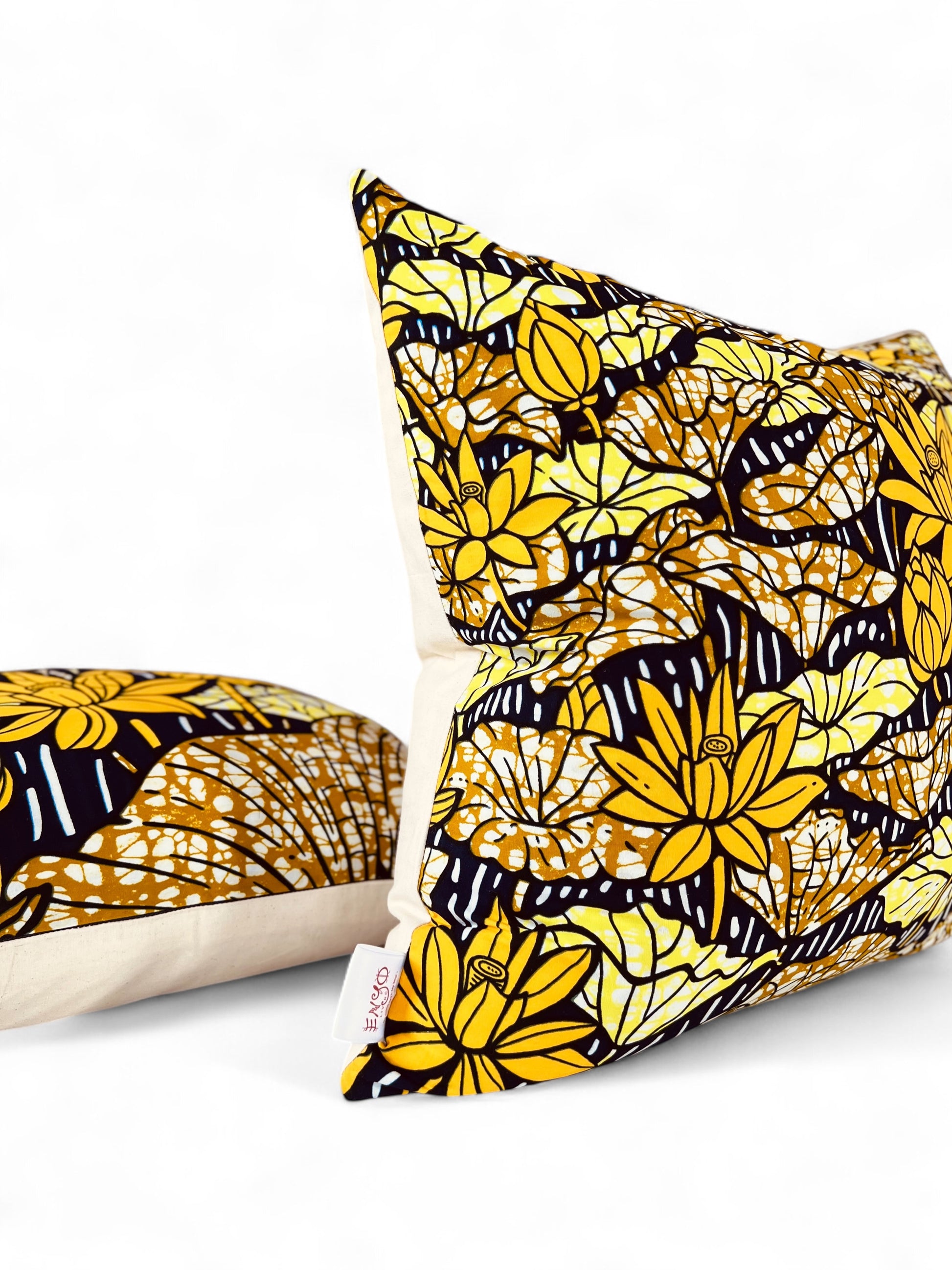 Tauche ein in den verträumten „Lake of Lotus“ mit unserem sinnlichen Kissenbezug aus der exklusiven Lomé Kollektion! Weiche Baumwolle verbindet sich mit einem floralen African Print in strahlendem Gelb und tiefem Dunkelblau – ein Design, das deinem Raum Frische, Farbe und Persönlichkeit verleiht. Dieser hochwertige Kissenbezug ist nicht nur funktional, sondern auch ein echter Hingucker, der jedes Zimmer aufwertet.