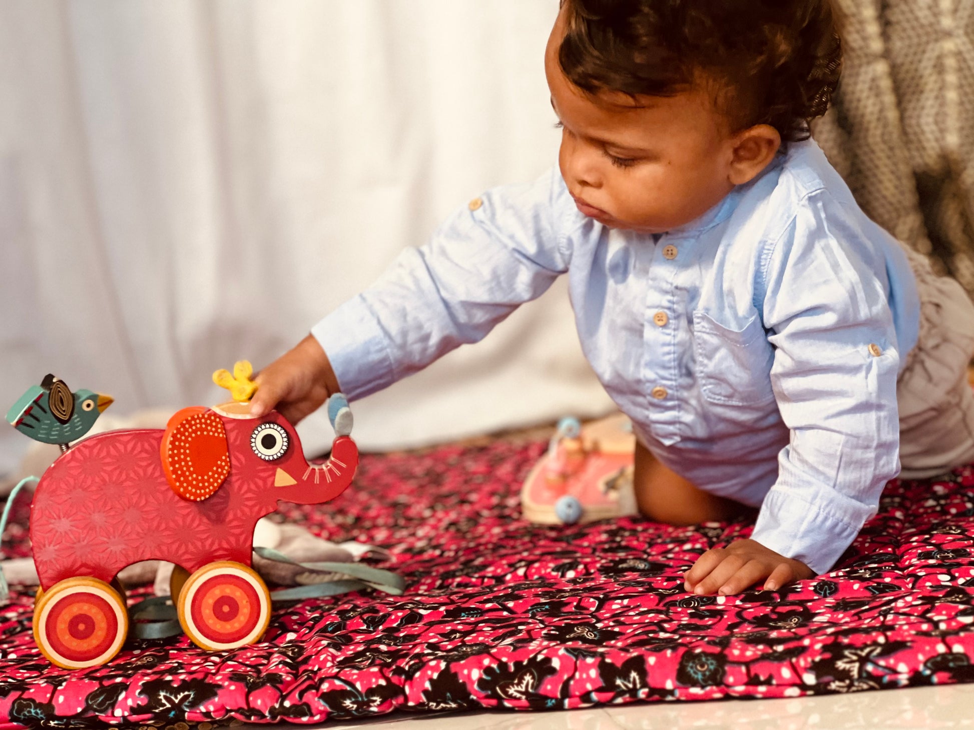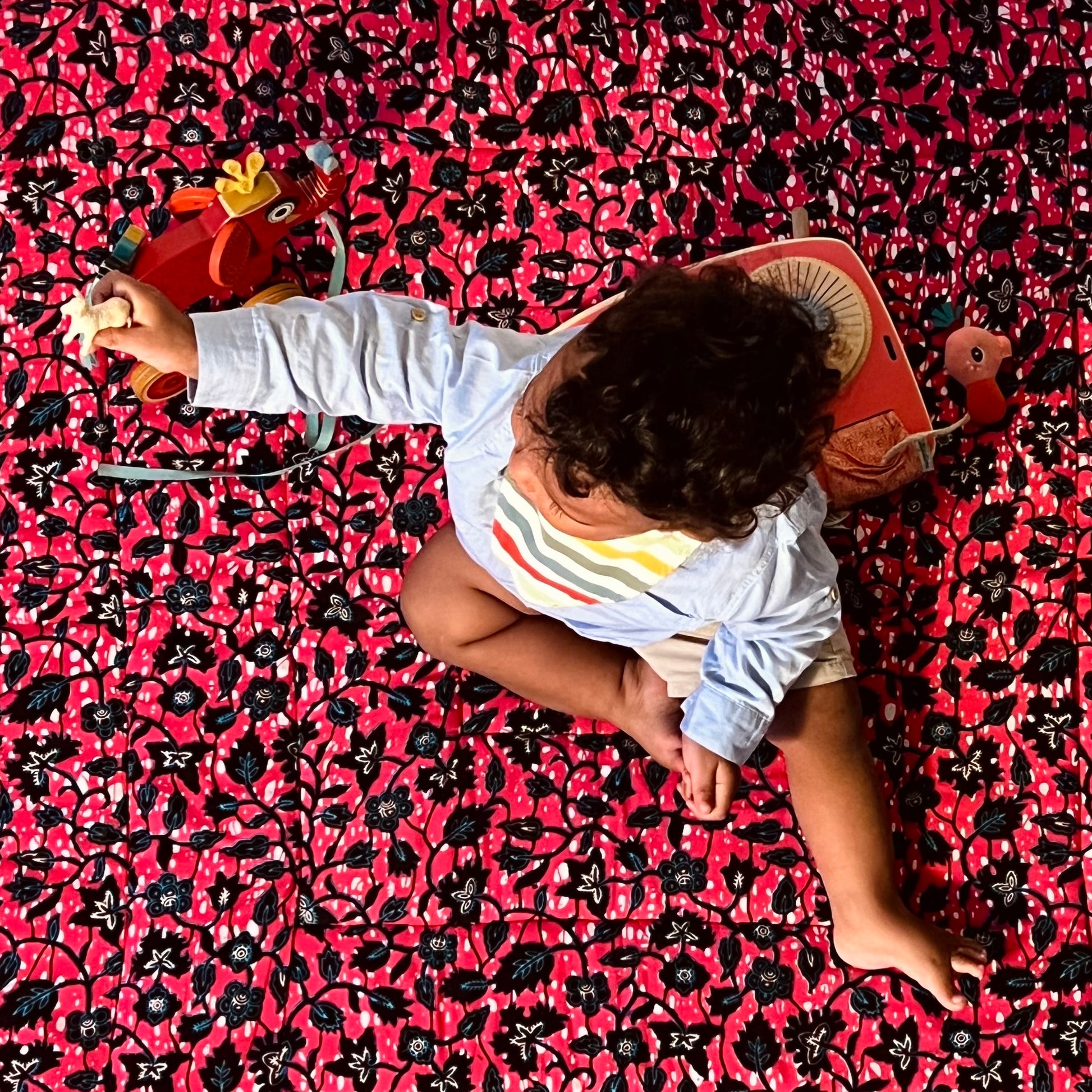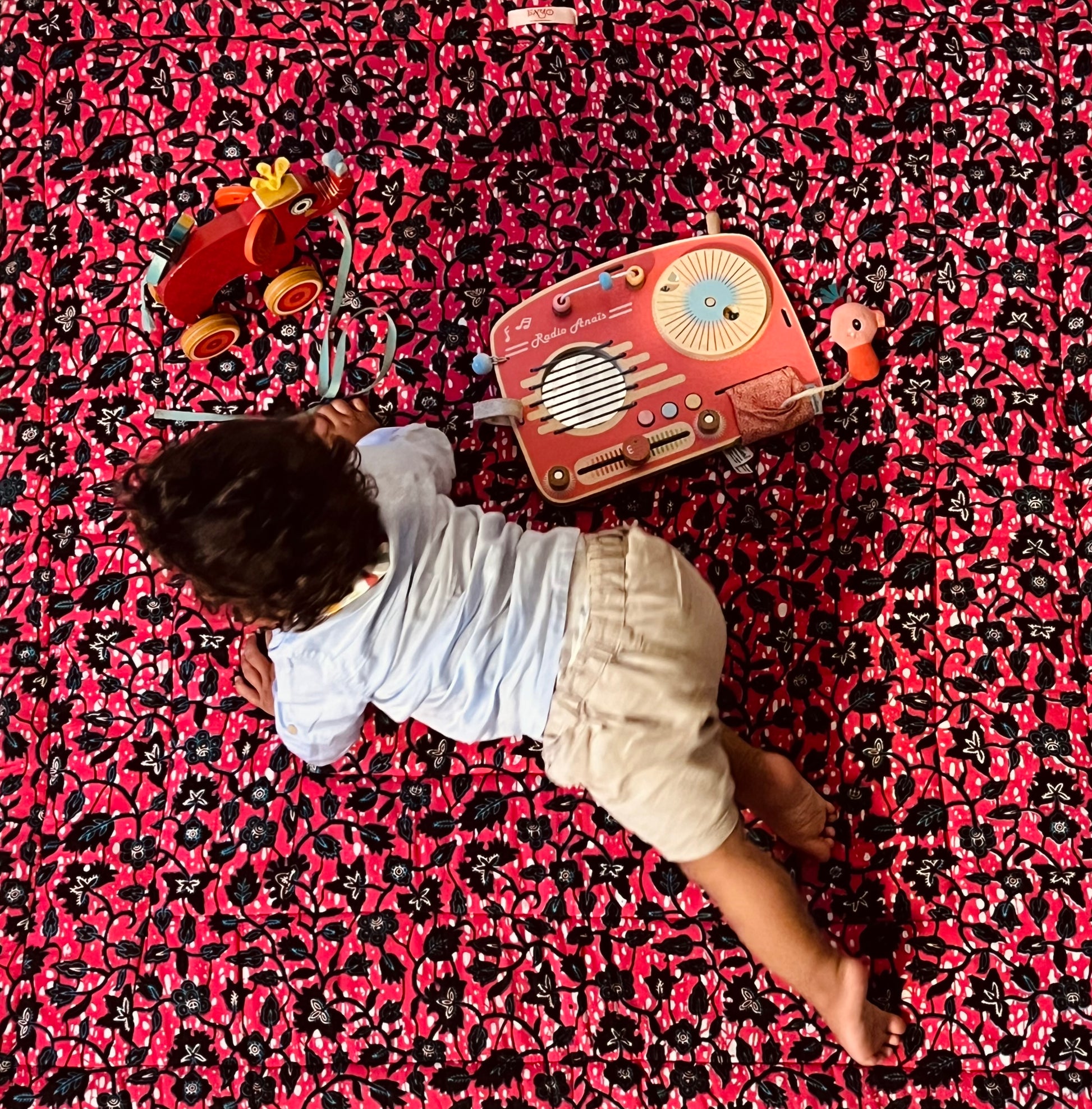 Mit Liebe handgefertigt und mit authentischem African Print ist jede Spielmatte ein Unikat. Das bedeutet, dass jedes einzelne Stück leicht von dem auf den Bildern abgebildeten Modell abweichen kann.