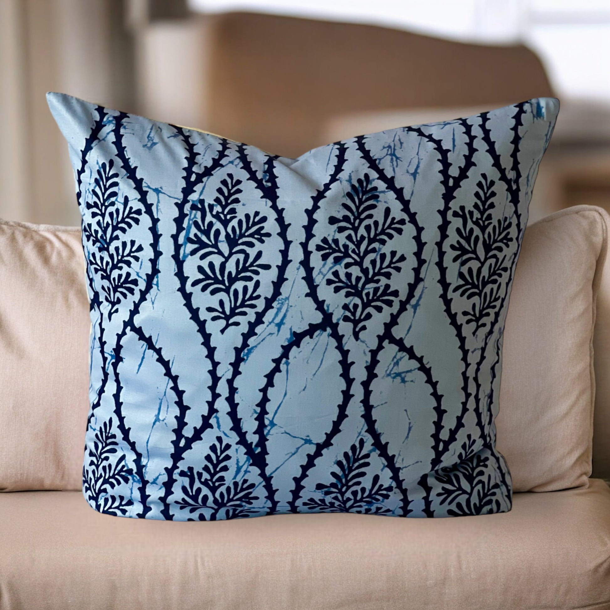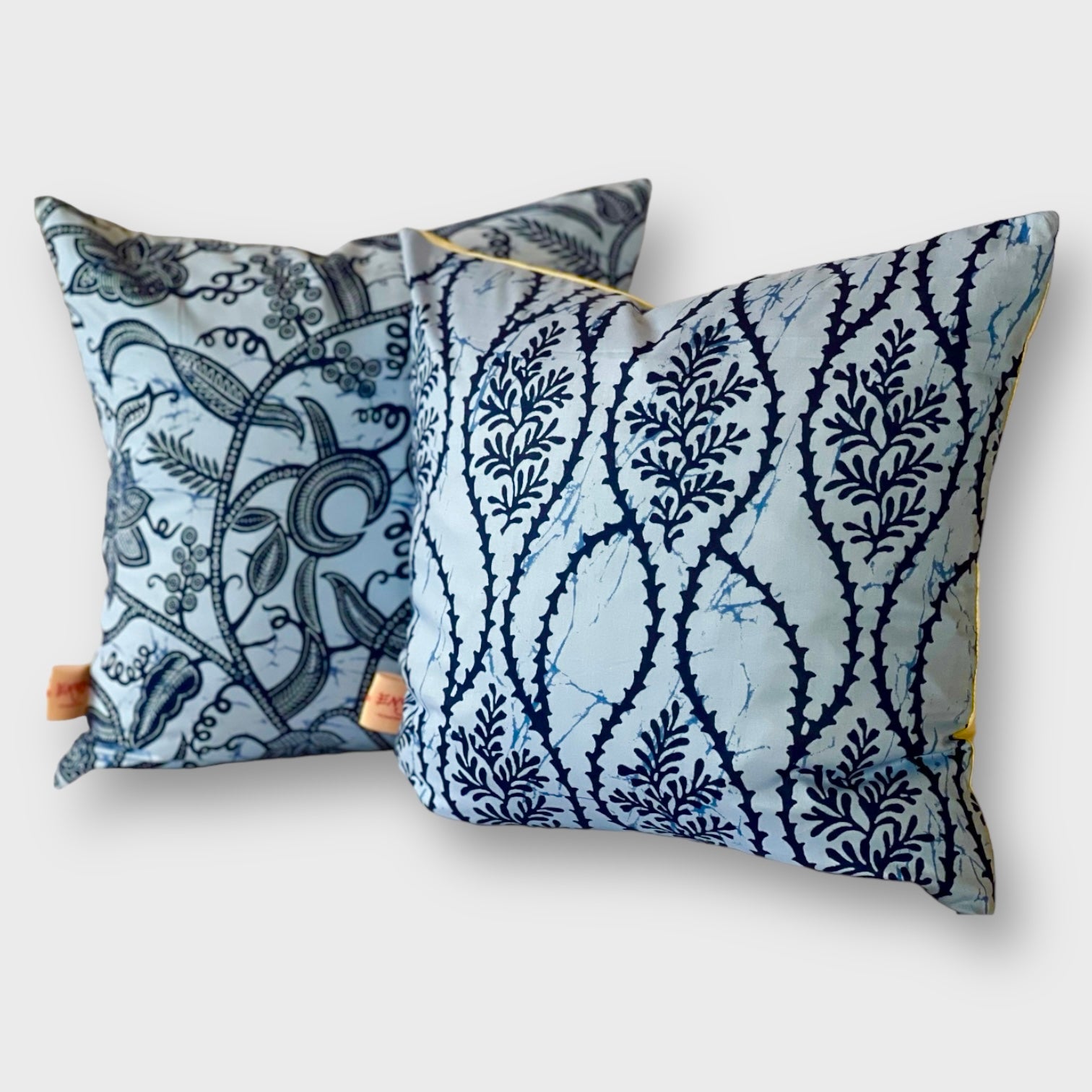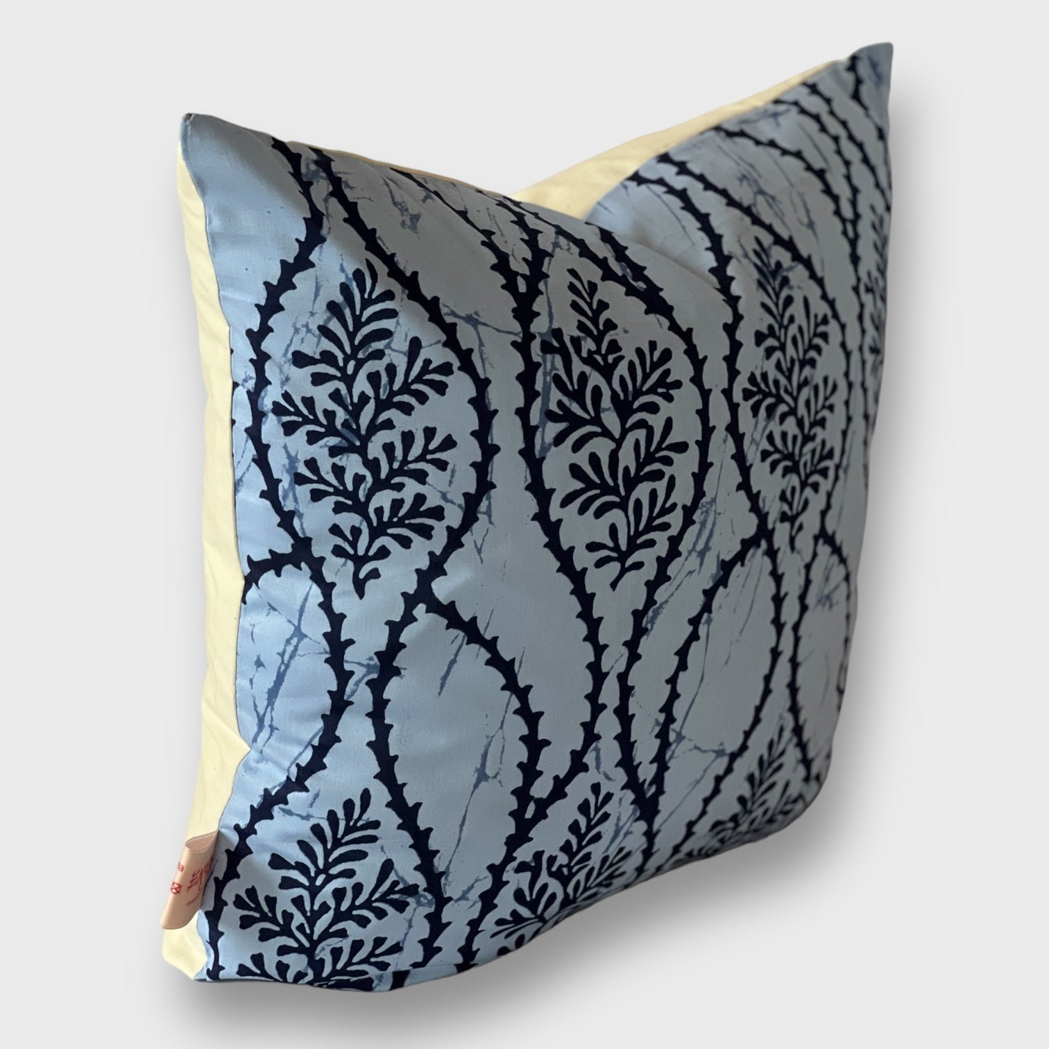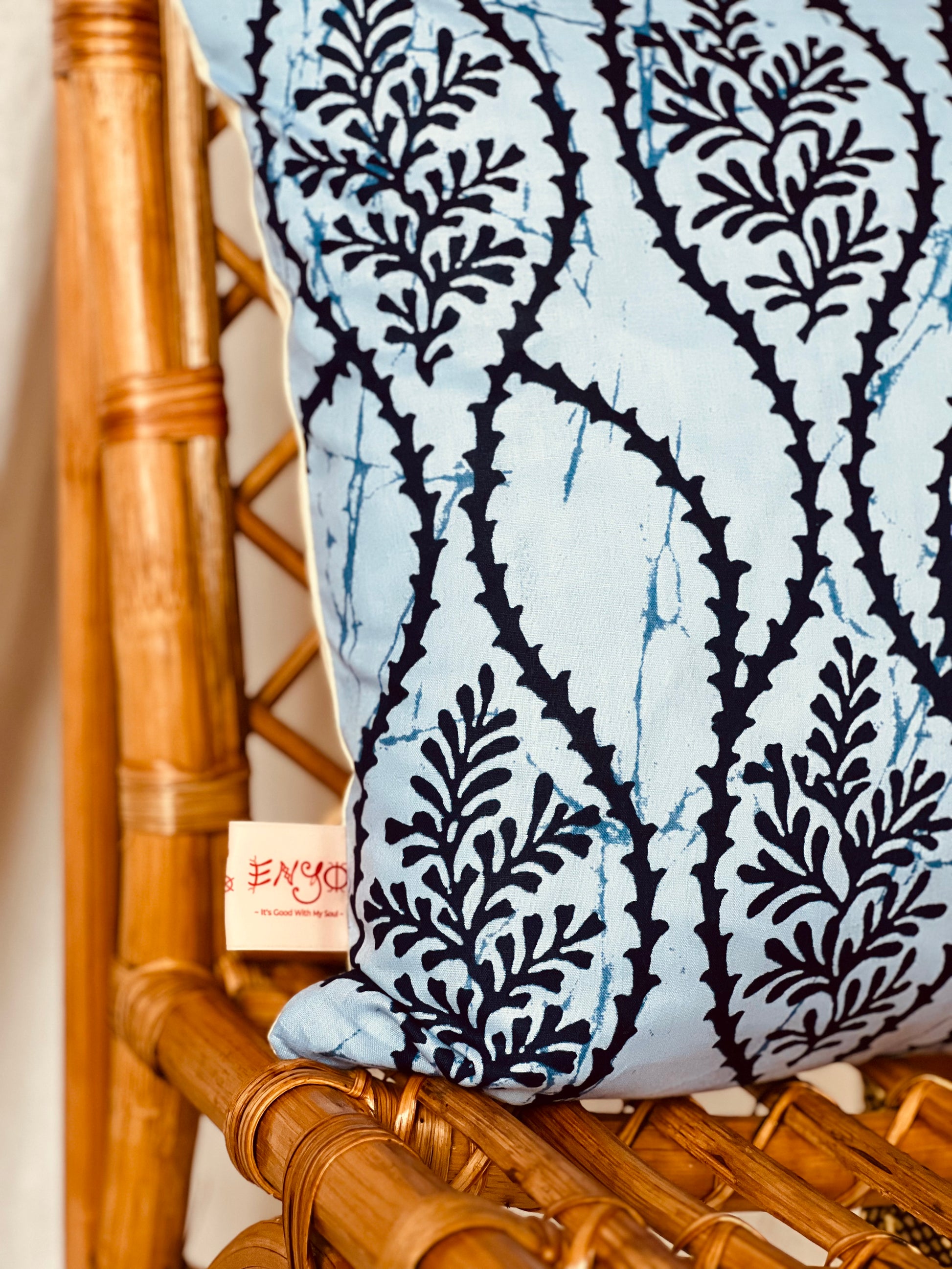 Add a touch of elegance and lightness to your home with our pillowcase “Forget Me Not”! Featuring a subtle African print in calming blue tones on the front and soft, natural creme cotton on the back, this pillowcase will bring a sense of serenity to any space. The hidden zip in a dark blue blends in seamlessly.