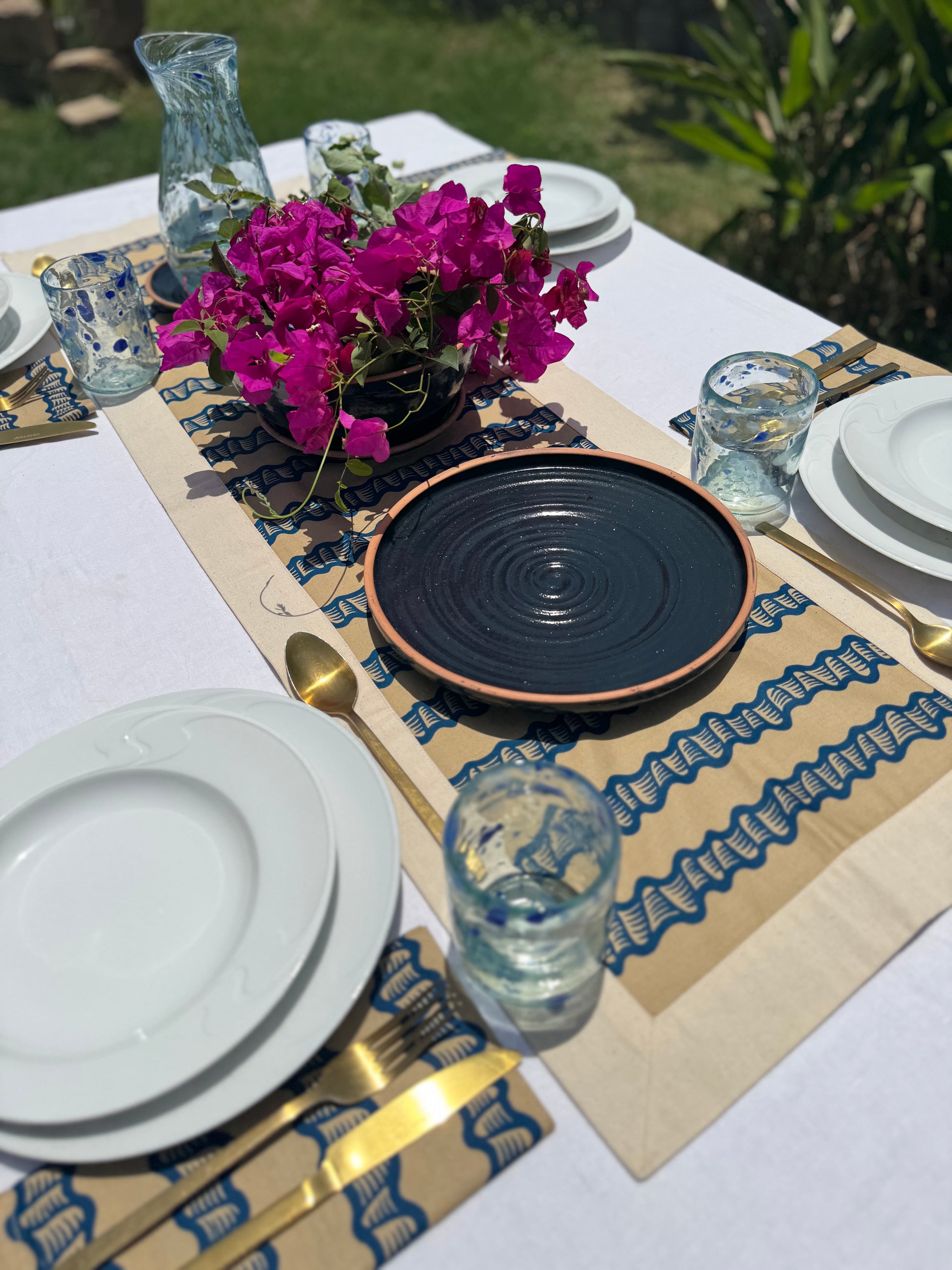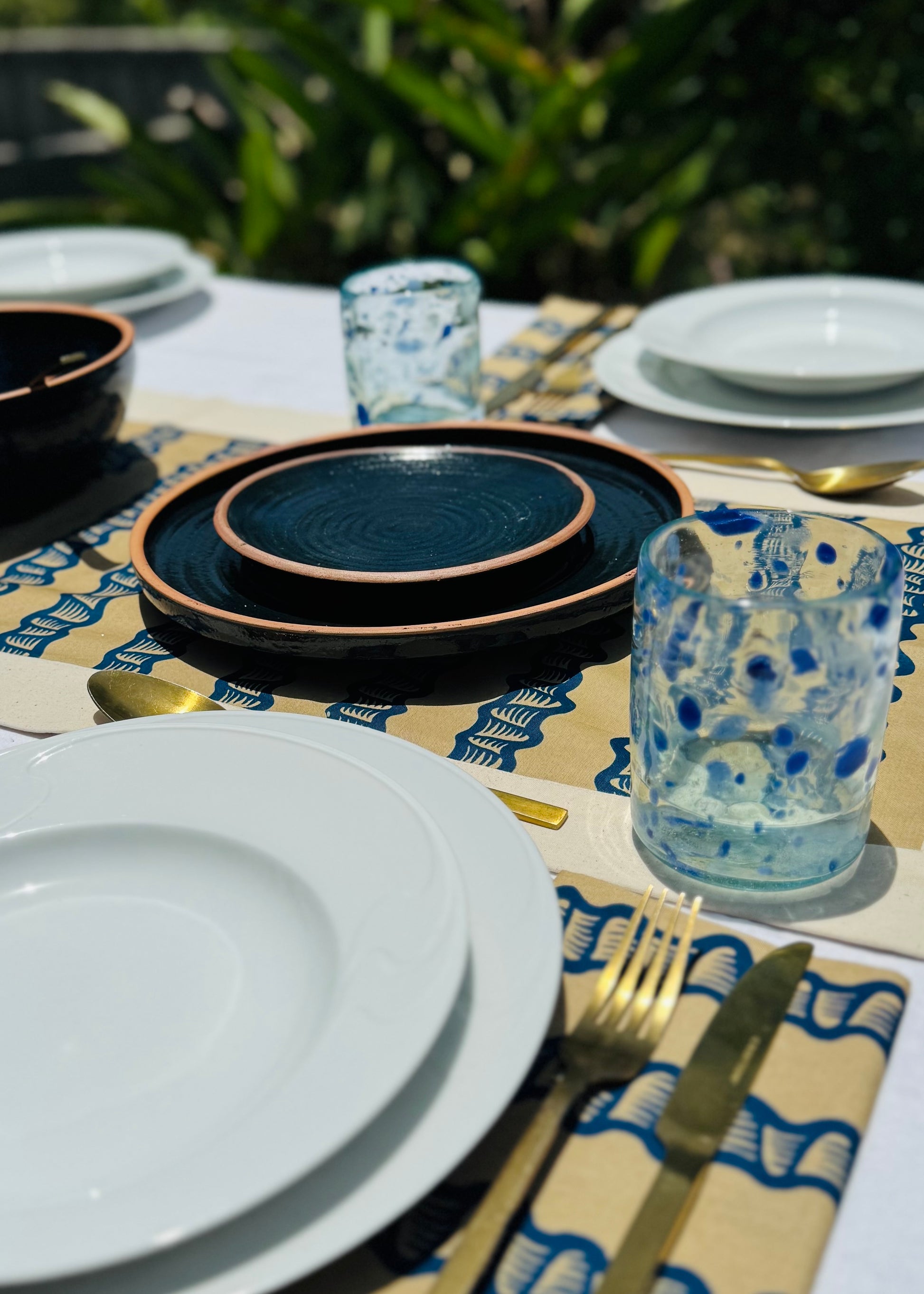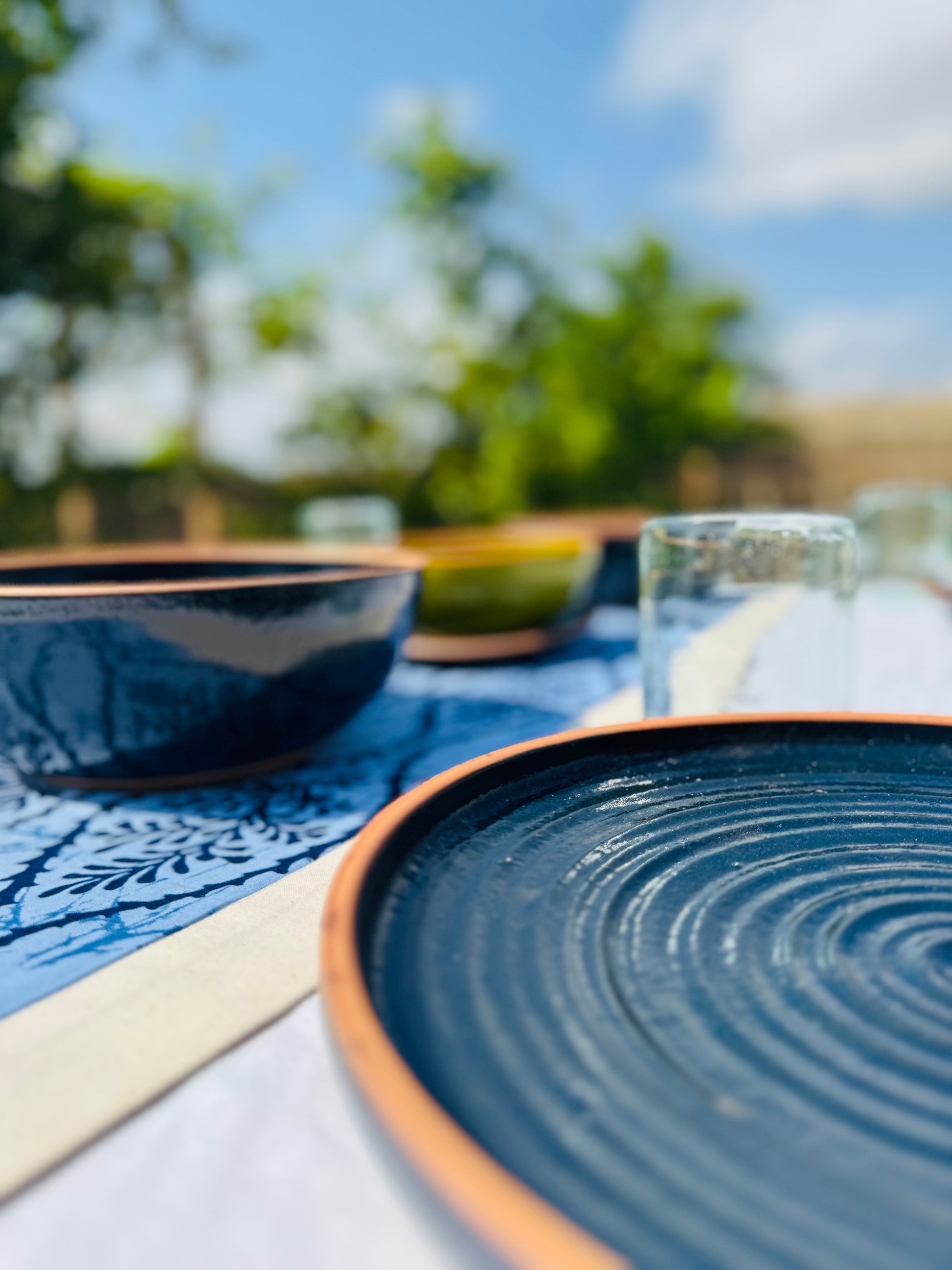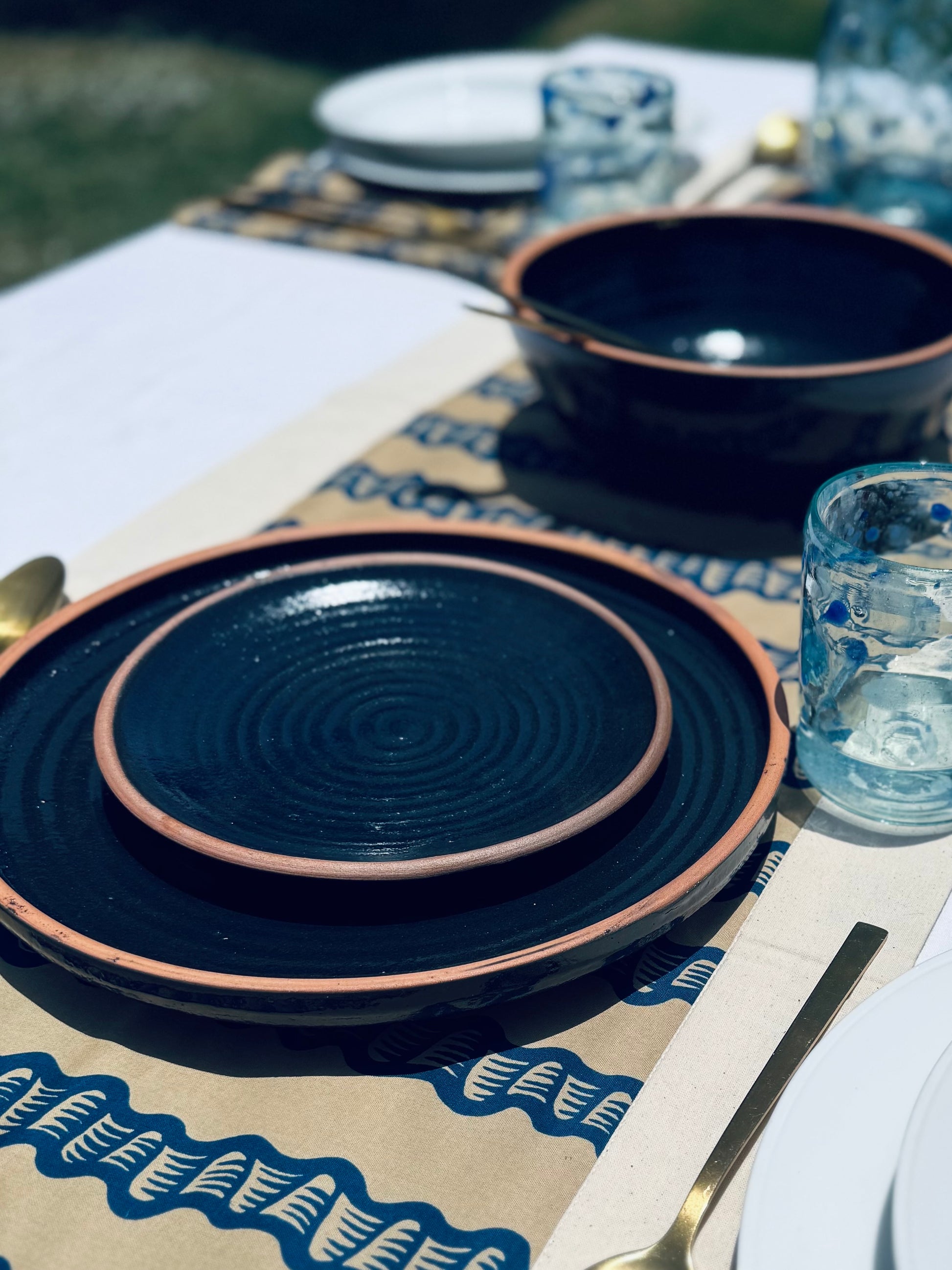 The "Neem" dinner plate in midnight blue is crafted from authentic Ghanaian earthenware clay. Its delicate surface lines showcase exceptional crafts(wo)manship, making each plate a unique work of art. Perfectly versatile and visually striking, this handcrafted piece invites you to embrace intentional slow living while adding a touch of elegance to your table.