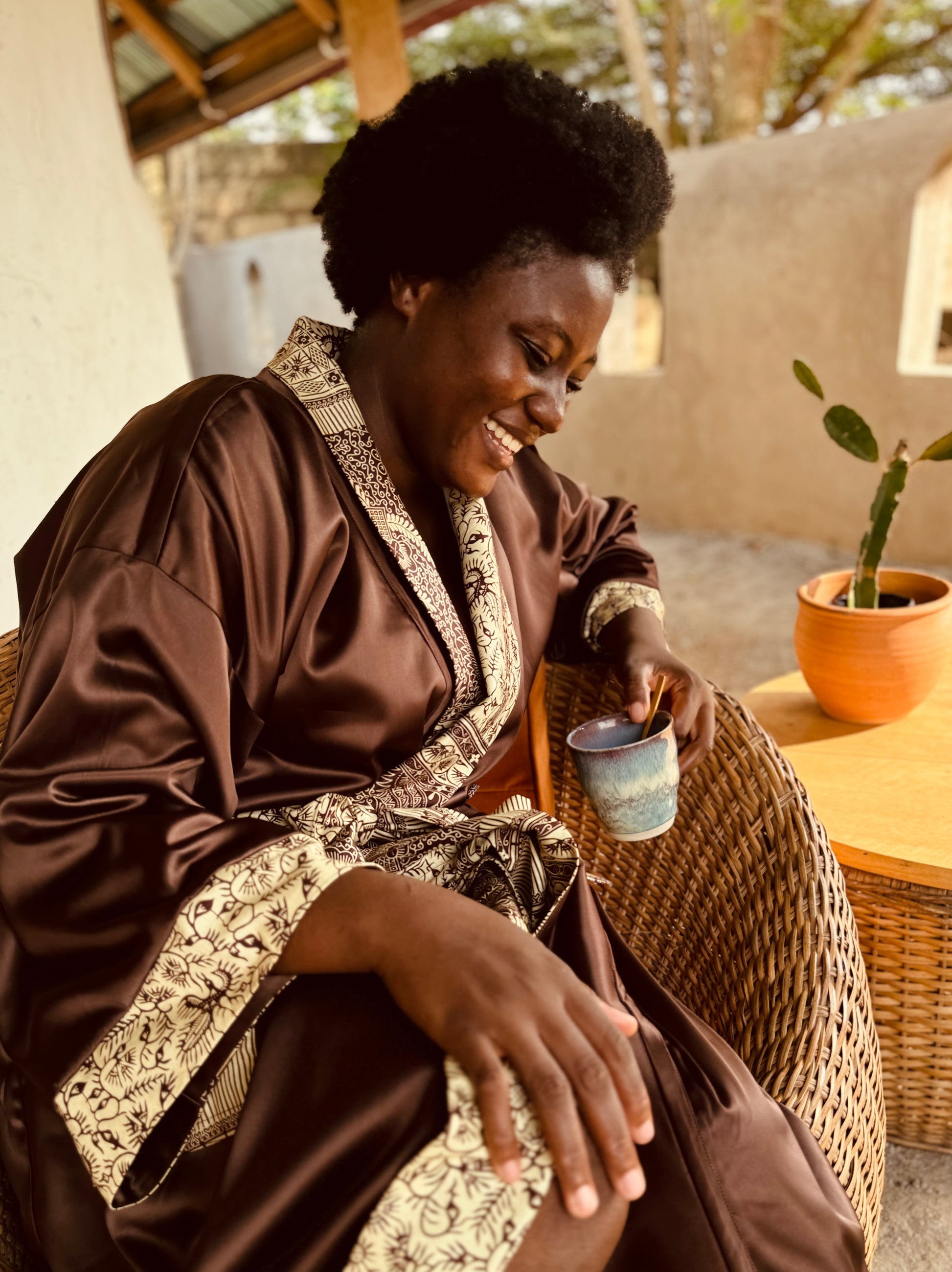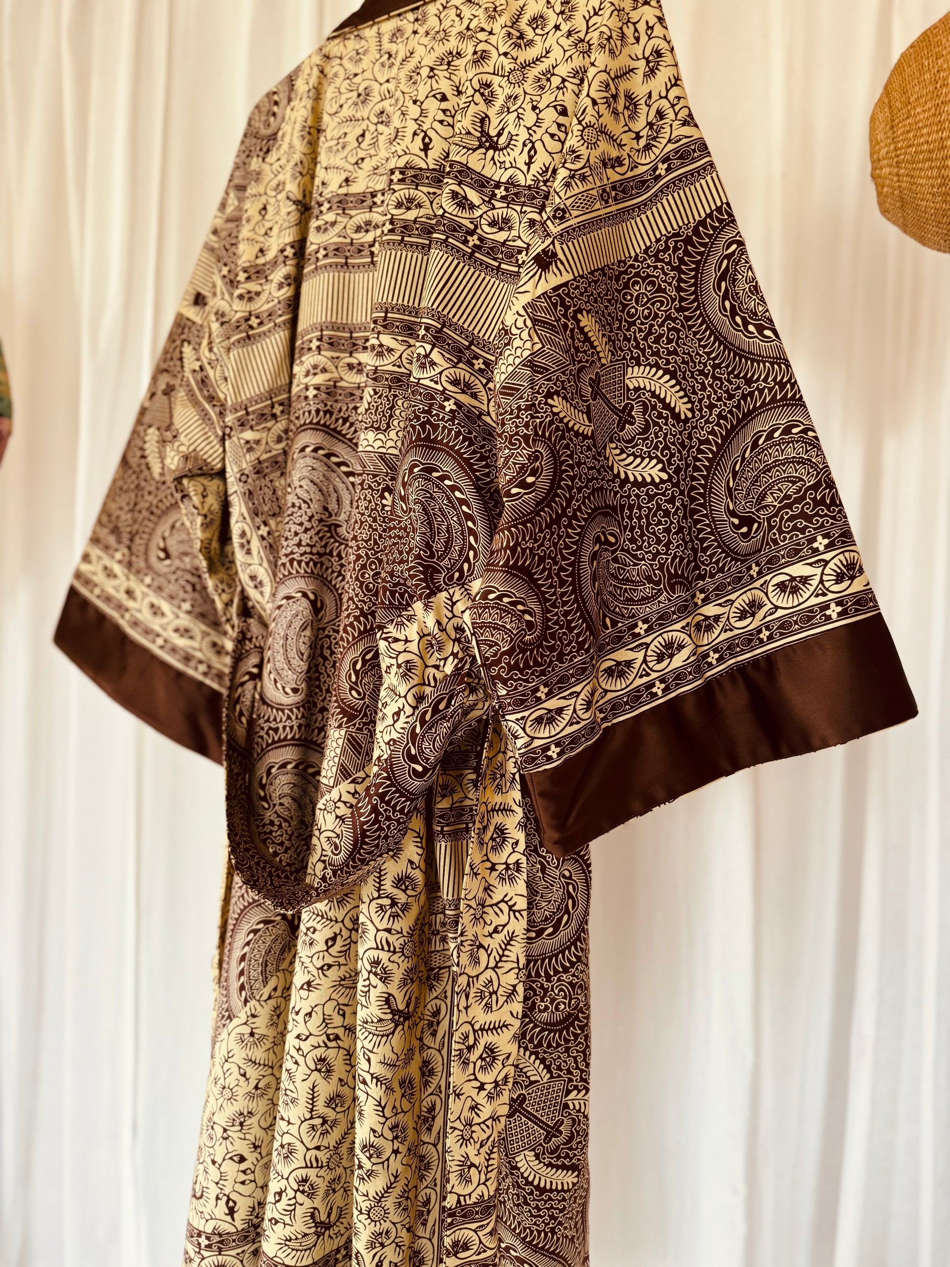Kimono "Canne à Sucre", Imprimé Africain & Satin (réversible)