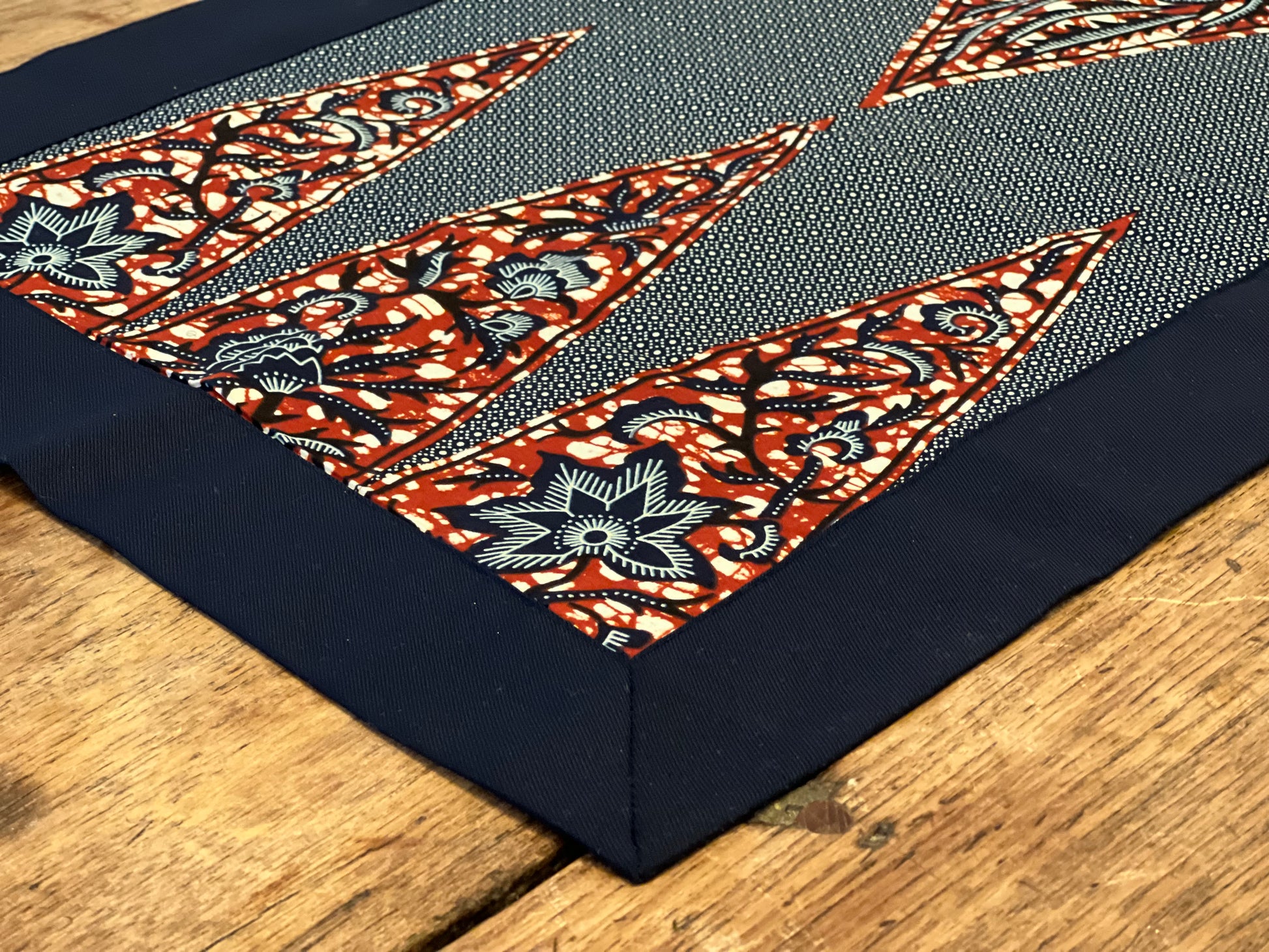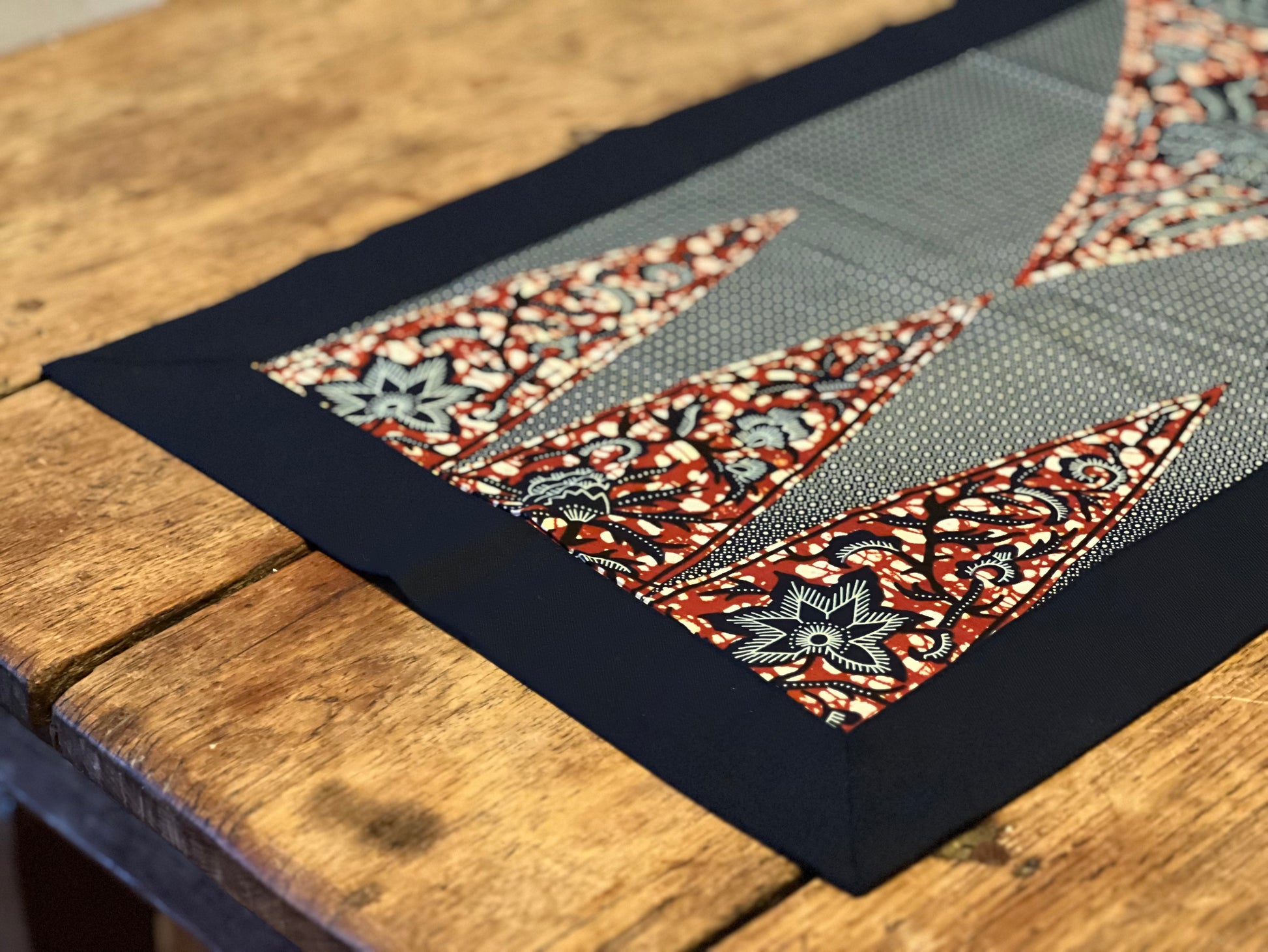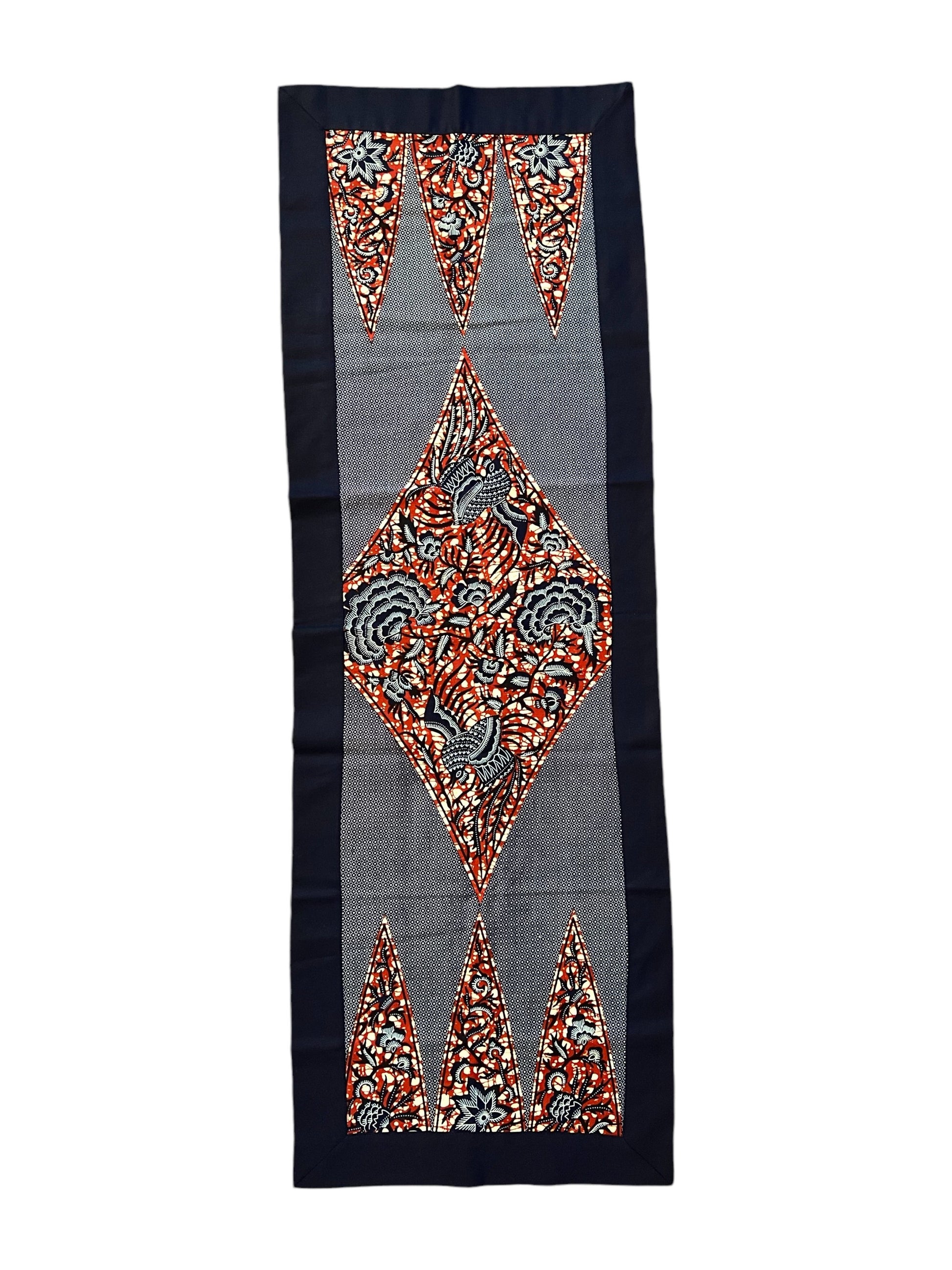 Elevate your dining experience with the Pheasant Gardens Table Runner, a perfect blend of African heritage and modern elegance. Crafted from premium fabric from our Lomé Collection in rich midnight blue and earthy rust-red tones, this table runner brings a sophisticated African vibe to your table setting.