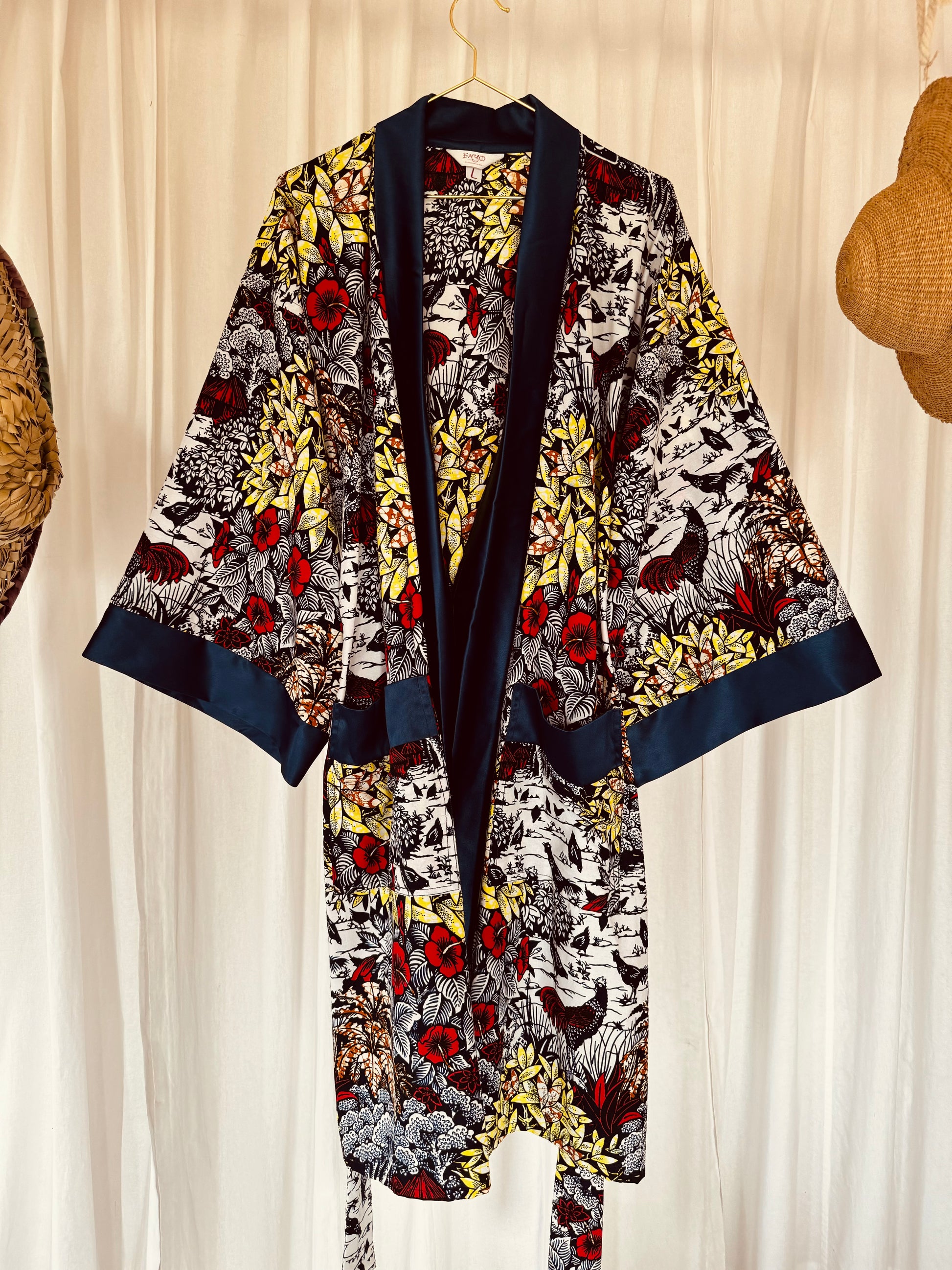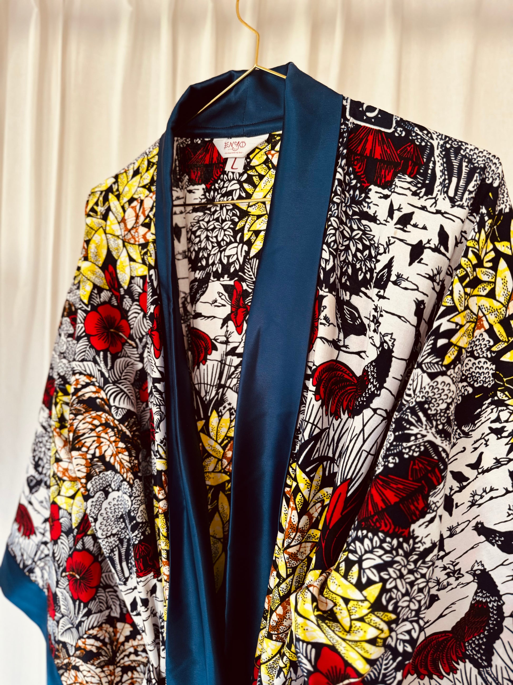 Inspired by the charm of traditional villages, the intricate patterns evoke a sense of nature, warmth, and community. Whether you're embracing a quiet moment at home or want to make a statement at your local spa, this robe brings an essence of artistry and will surely turn any moment into a special one.