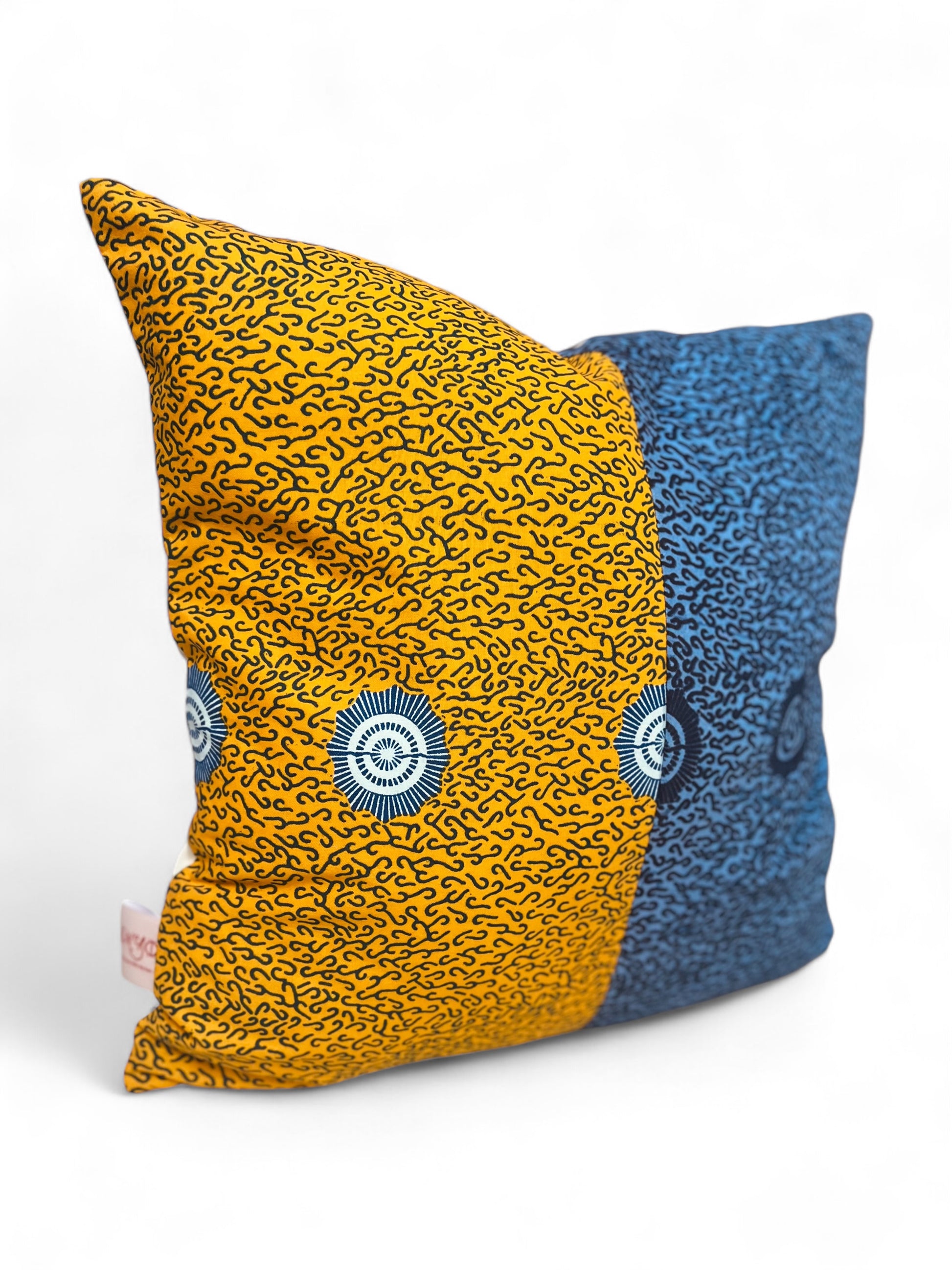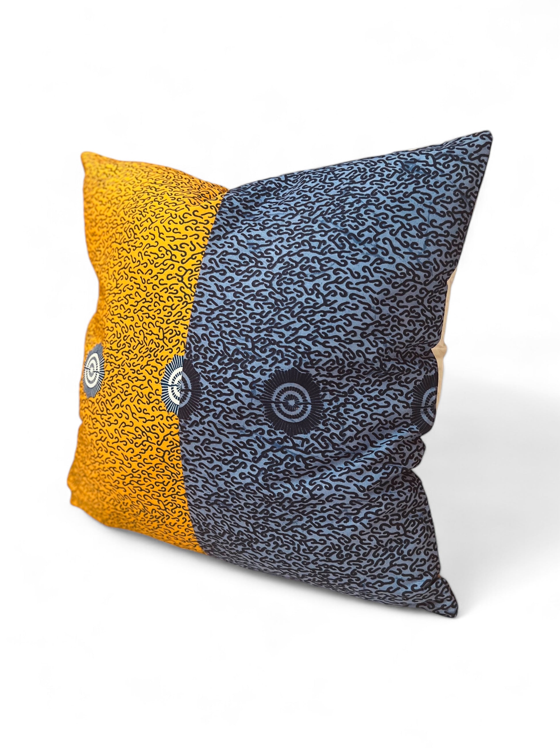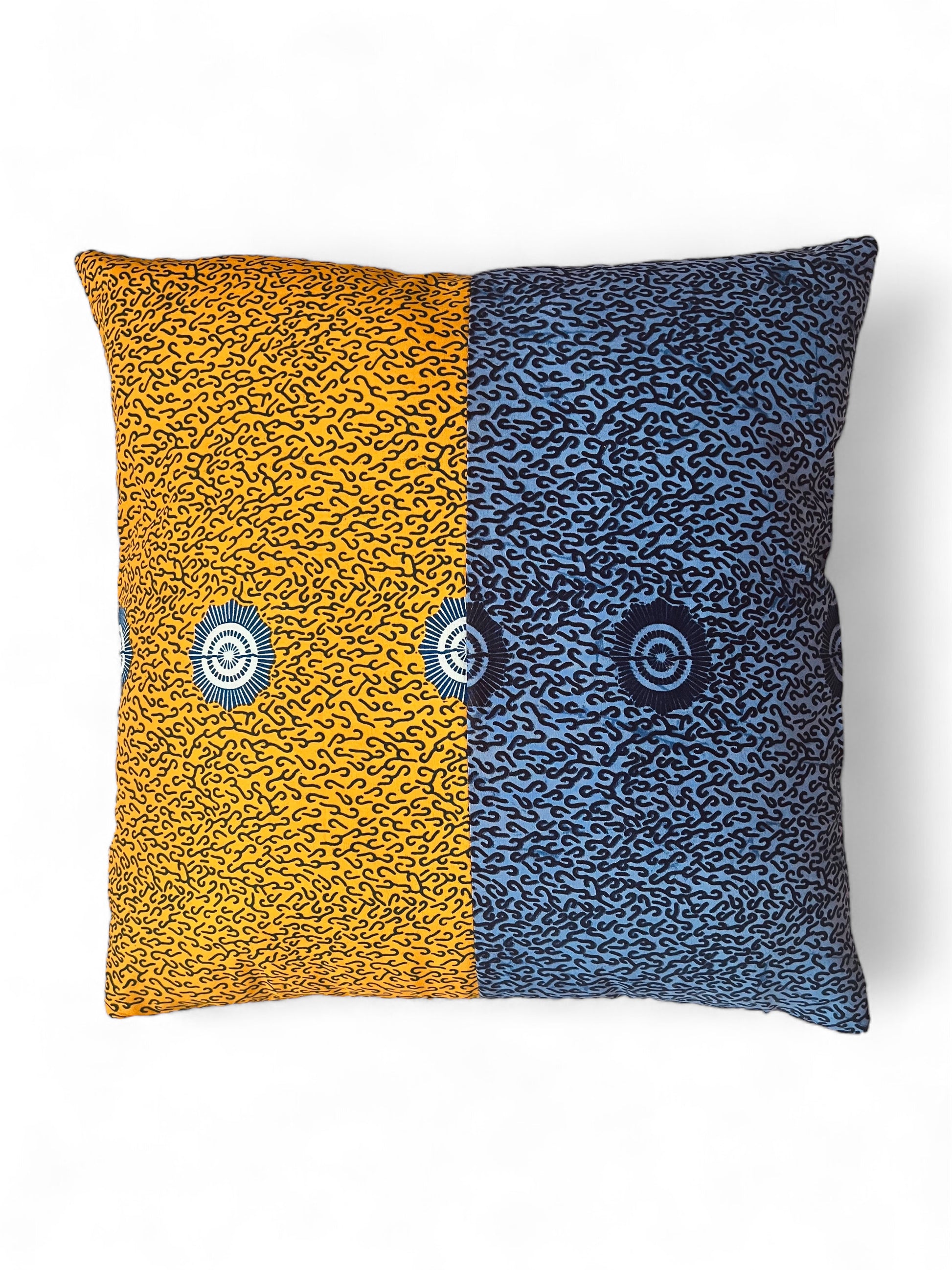 Add some rhythm and harmony to your home with our "Gramophone" pillowcases. These unique decor pieces feature a sunny yellow and sky-blue African Print on natural cotton. Guaranteed to elevate your mood and brighten up your living space! Each piece comes with a hidden zip matching the colours of the pillow.