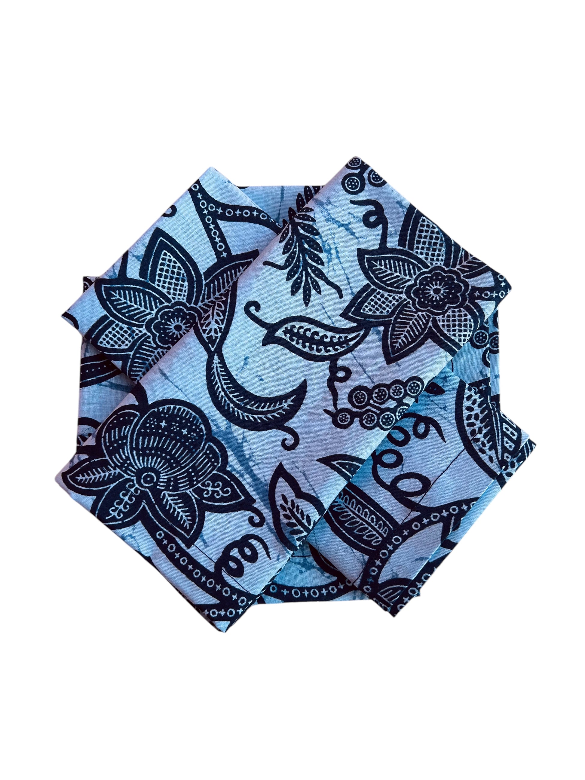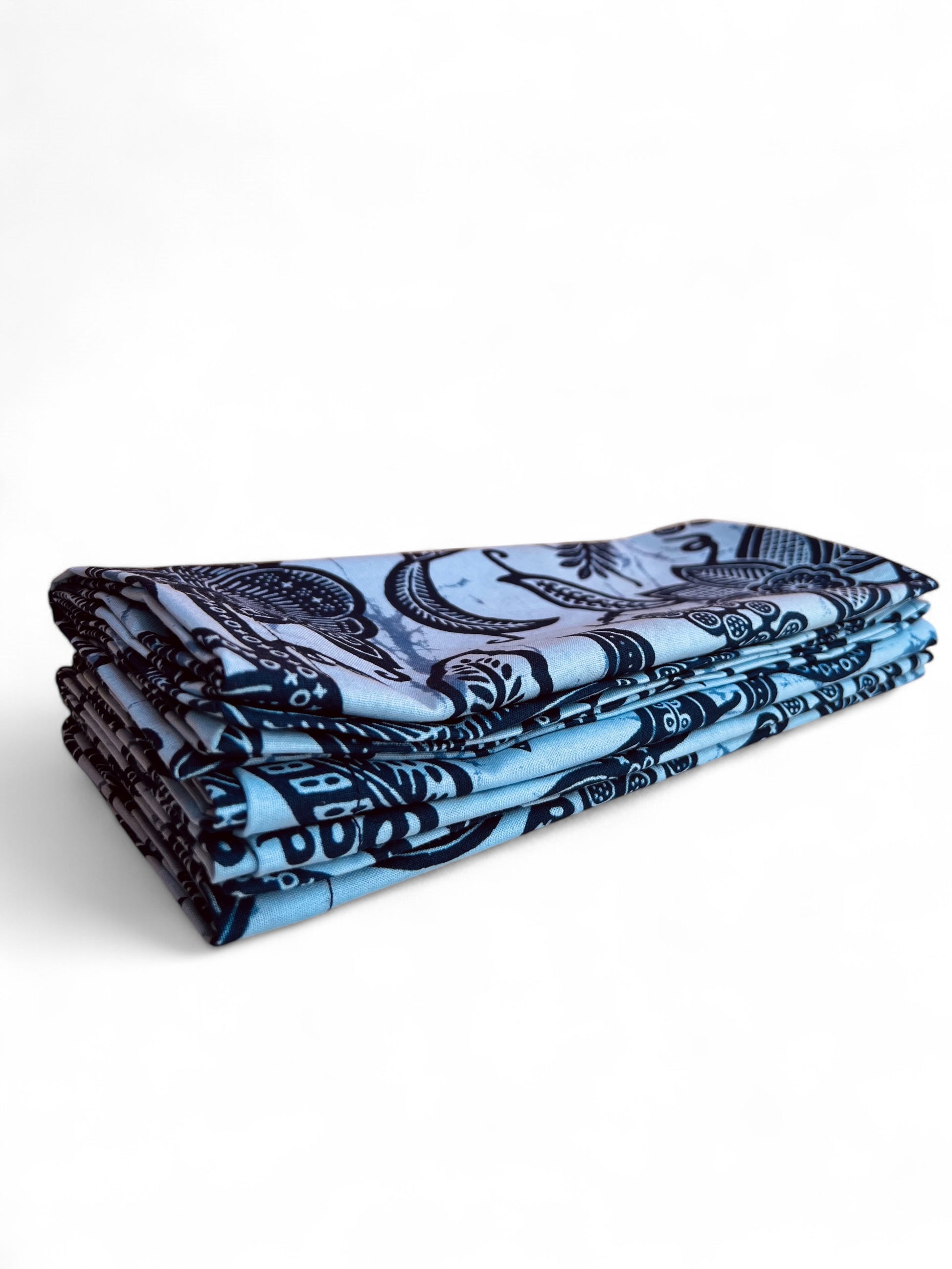 Elevate your dining experience with this exquisite 4-piece napkin set, adorned with a flowing vine-inspired design in harmonious shades of blue. Crafted from 100% cotton, these reusable napkins blend artistry with sustainability, making them ideal for both everyday meals and special occasions. Their intricate pattern and durable quality add a serene, refined touch to any table setting.